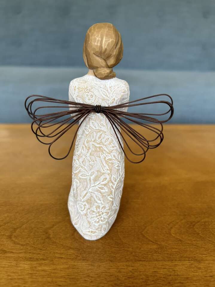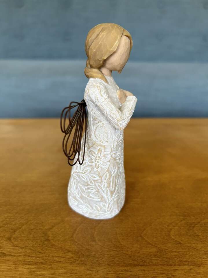 Willow Tree “Remembrance” DEMDACO collectible figure, by Susan Lordi, 2010. Standing angel with arms crossed and a small golden heart. Hand-painted, beautifully carved resin, wire wings. 5.5” tall. Excellent condition. Text only. Cash or Venmo.
