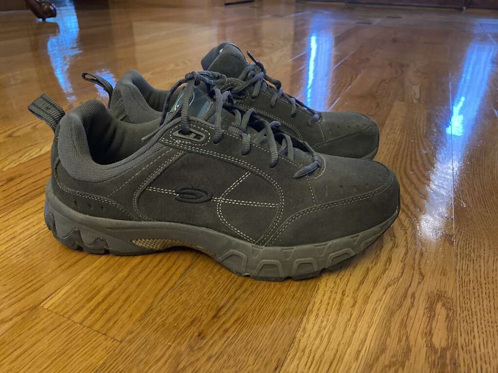 Dr. Scholl's Men's Athletic Grey, leather/fabric upper, size 11.5, in a great condition (used only a couple of times). It contains advanced technology licensed by Schering- Plough. Let me know if you have any questions.