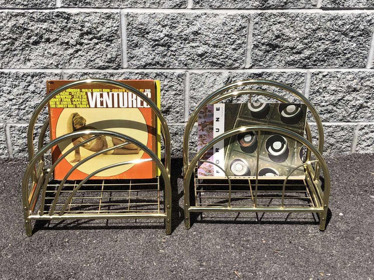 Venmo$30 each. Vintage Mid century modern wave brass magazine racks. MCM Hollywood Regency