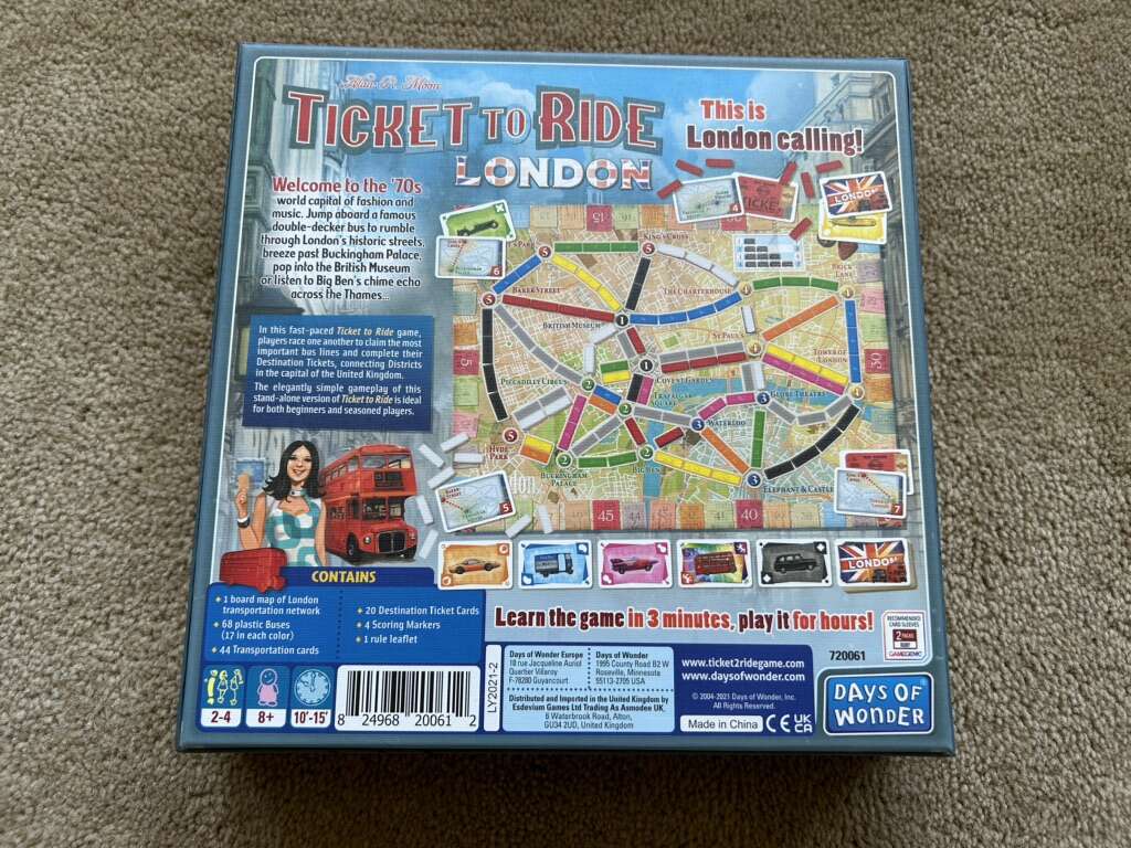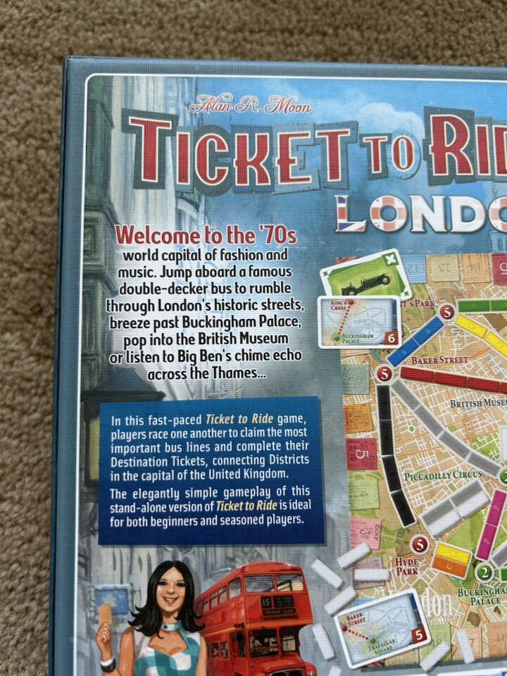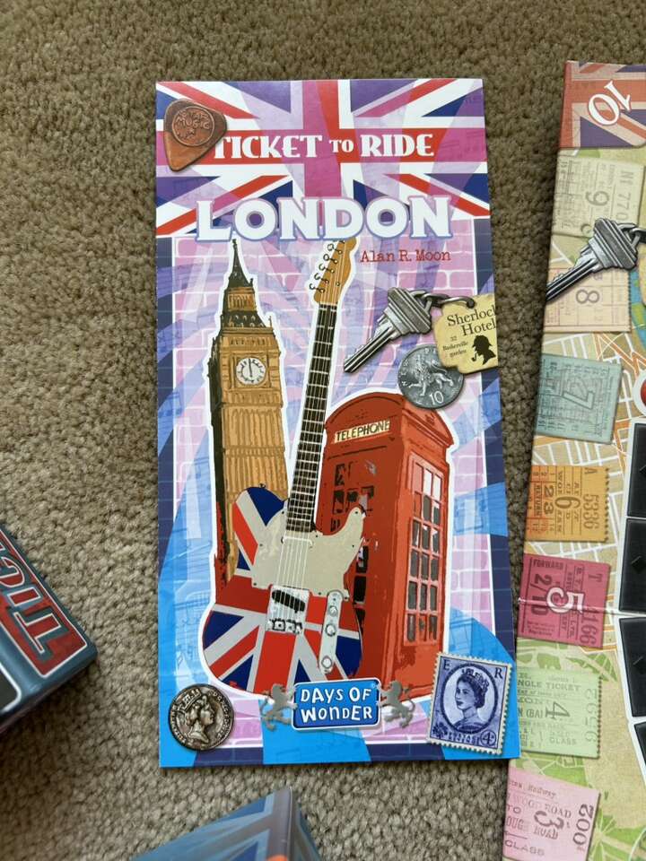 NEW (open box, sealed components) Ticket to Ride: London. Welcome to the 70s! By Days of Wonder, Alan R. Moon, 2021. This is London calling! A smaller, fast-paced Ticket to Ride game. Ages 8+, 2-4 players. New, unplayed condition. Open box, sealed components. Text only. Cash or Venmo.