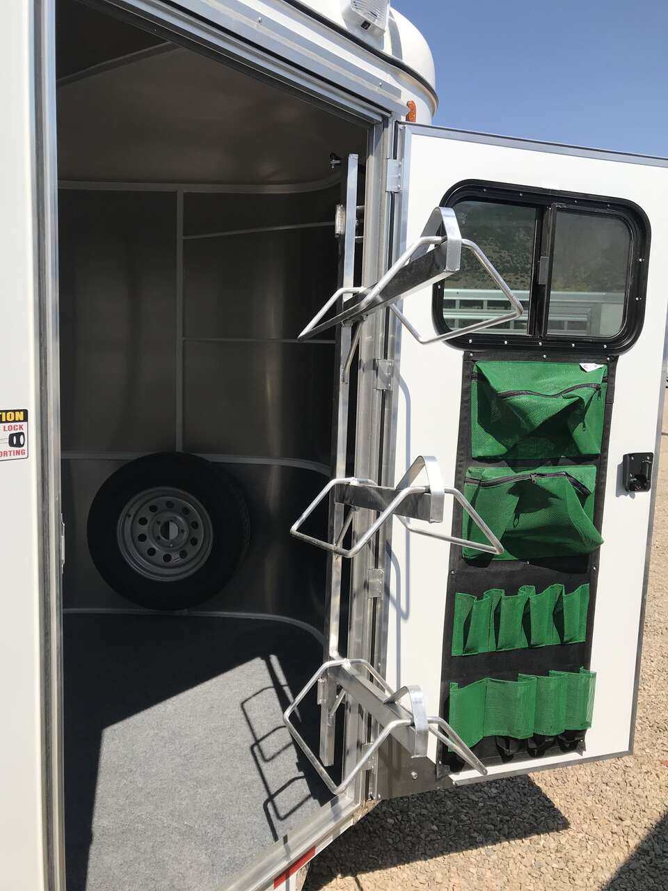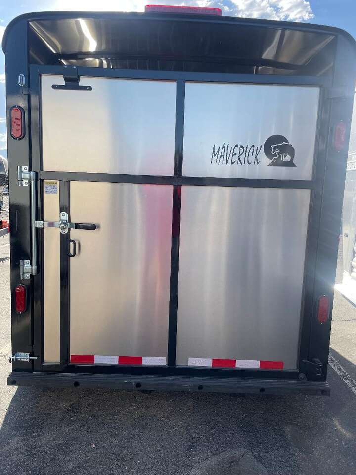 Maverick 3 horse comes with swing out saddle rack, halter hooks, spare tire, blanket bar, tack organizer on the door, LED lights, padded airflow dividers, and more. Come check them out in North Salt Lake.