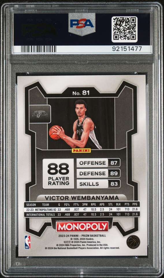 2023 Prizm Monopoly Victor Wembanyama Rookie #81 PSA 10 Spurs