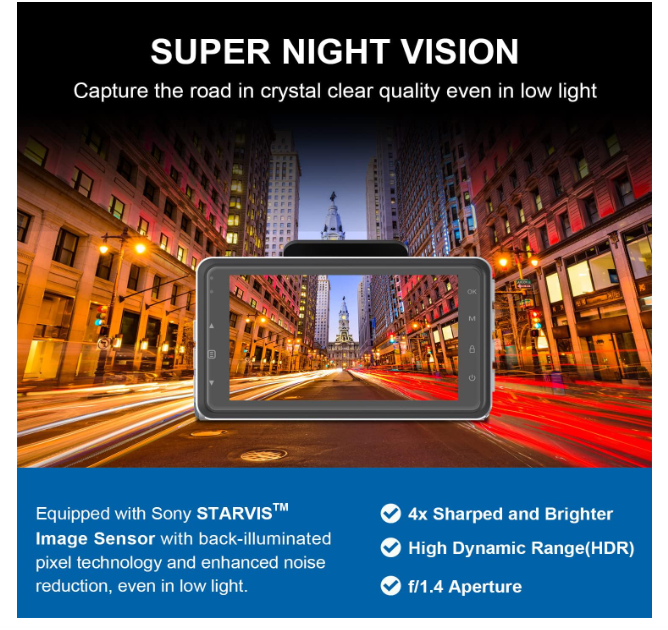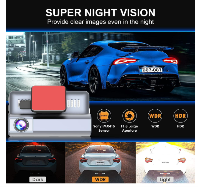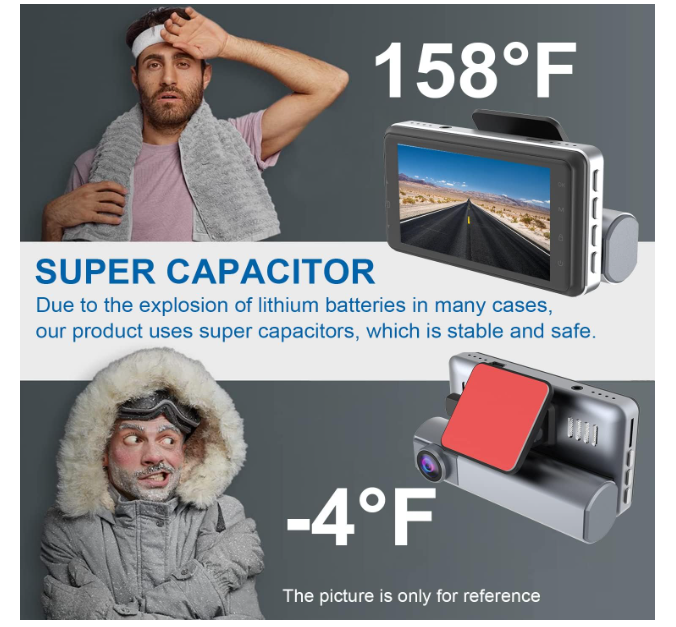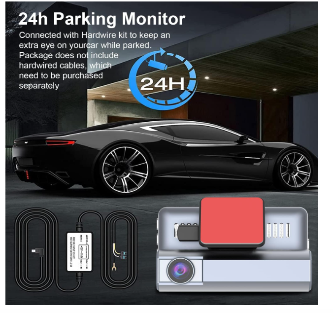 ApplePayIdeal Choice of Dash Cam For Car Meet all of your demands of a dash cam: loop recording, emergency recording lock, parking monitor, time-lapse, parking assist,G-sensor, motion detection, auto start/stop, loop recording, time lapse recording, built-in microphone & speaker. Offer you much more than these. Two kinds of mount provide more installation options, support 128GB Max SD card for a long time road trip.(Include 64GB TF card for free) Full HD Three Channel Dash CamThis Front & rear camera is 4K +1080P. Allowing you to capture everything from street signs to license plates. This dash cam front, inside and rear is your superior choice for family road trip. When combined, these 3 powerful units cover your cars blind spots, inside and out.The ultra-wide-angle lens allows 165°field of view that easily covers four lanes and captures distortion-free images. Super Capacitor & Large Aperture Power is delivered with the help of super capacitor, a premium alternative to a lithium-ion battery which can safely withstand extreme temperature and extend the lifespan of the dash camera. The car dashboard camera recorder provides extreme heat/cold temperature resistance from 14 to 158°F. The triple channel dash cam has F1.4 Large Aperture and 6-glass lens clearly capture license plates even from multiple lanes of traffic. IR Night Vision with WDR Technology2 channels of the dash camera use STARVIS sensors and WDR technology to guarantee the ultimate sharpness and night image quality even in low light environments. Dash camera for cars has 6pcs IR LED lights facing the car cabin, which can accurately capture the situation in the car even when the cabin is completely dark. Car license plates can be easily captured at night. Ensures the clear footage and images you need to record driving at night. Advanced HDR Technology & IPS ScreenThe HDR (High-Dynamic Range) technology allows the dash camera to perform optimally in any lighting situation by adjusting the exposure to create balanced images and footage, avoid high exposure in strong sunshine and enhance exposure in low-light or backlight situations. Three way triple car camera has 3.16" IPS LCD Screen provides a clear video and easier operation with the customizable menu and icon. Built-in Super MicrophoneThe 2 channel dash cam captures the sound to provide solid evidence during police traffic stops and other incidents clearly, give you all around protection.The dash camera front and near also supports optional external microphone to meet your all kinds needs, suitable for family, ride share (Uber/Lyft) driving, taxi driving, vlogger, etc. Motion Detection Parking Mode&G-sensor Parking mode will monitor events both inside and outside of your car for 24hr. The dash cam front and rear will automatically switch to parking mode after the engine is off, so it doesn’t miss any events for any time. With built-in G-sensor supporting variable sensitivity, the car camera recorder can auto-detect sudden shake or collision and lock the footage in an emergency to prevent that video from overwriting.