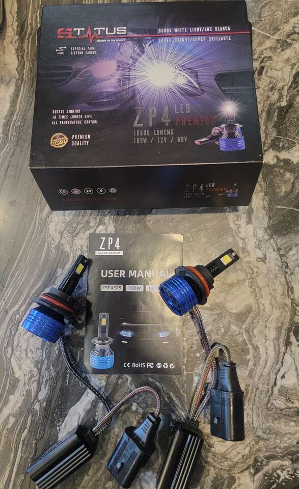 New in Box Status ZP4 LED Premium 9004 HB1 Set of 2 Headlight Bulbs 16000 Lumens 6500K White 100W/12V/80V. $25