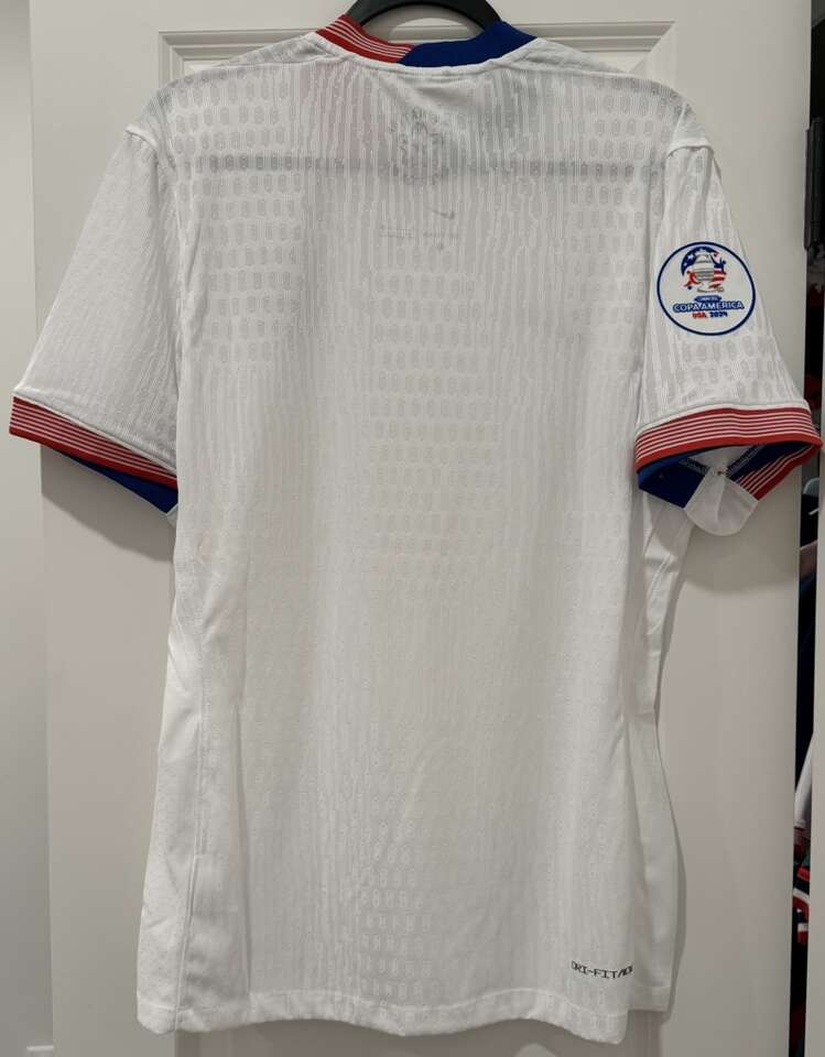 This jersey is brand new. This is the player version jersey, it fits slim, size adult XL. Has Copa America patch on one sleeve.