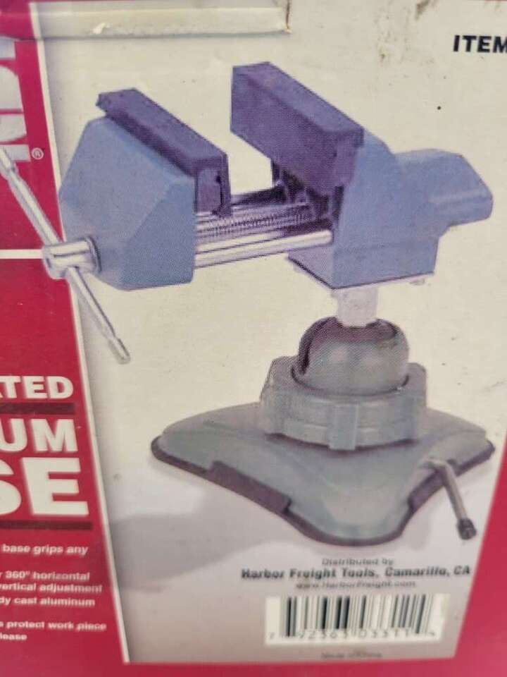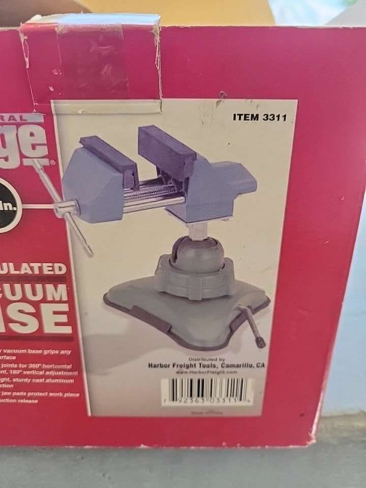 Central Forge 2 3/4 inch. Articulated Vacuum Vise. Box is destroyed. Price firm