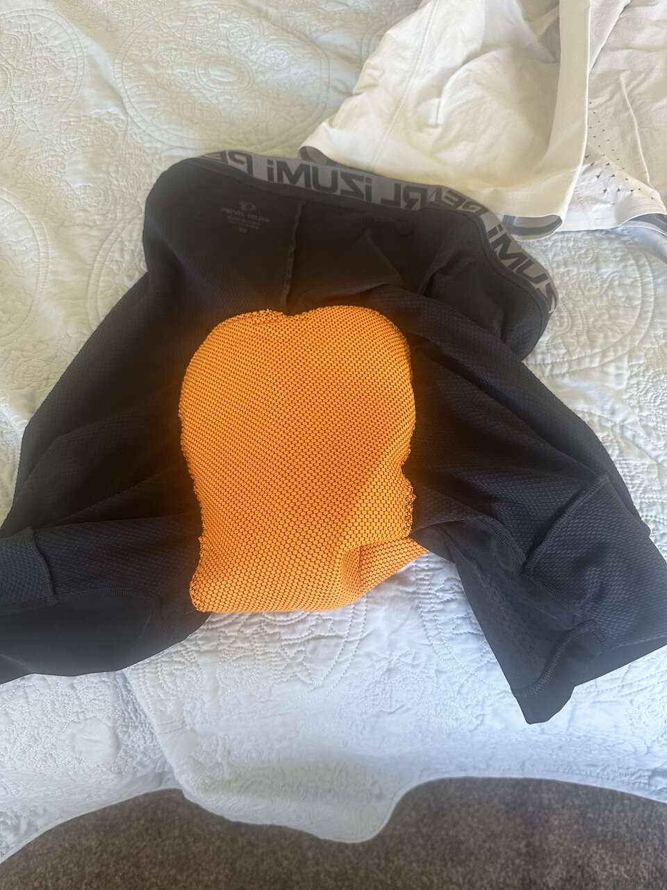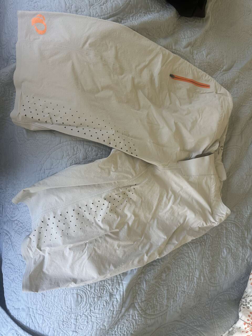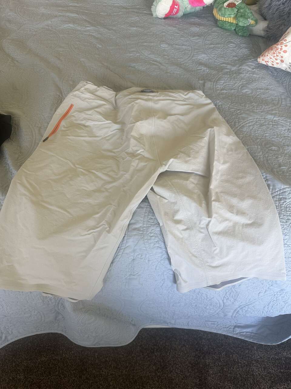 The shorts have been sitting in my dresser and have maybe been worn 4 times. The shorts have an boa adjustment for the waist with reverse pockets so you phone/keys don't get in the way as you ride. The chamois has a pouch/pocket on each leg.