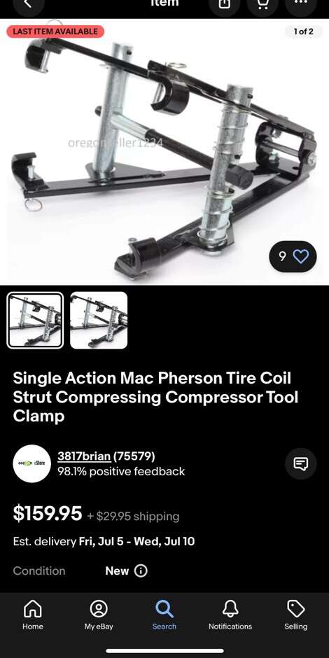 NEW Pittsburgh Single Action Mac Pherson Tire Coil Strut Pittsburgh Single Action Mac Pherson Tire Coil 43753 Strut Compressing Compressor Tool Clamp.New in box never opened. Some ware on box from storage. Price is negotiable