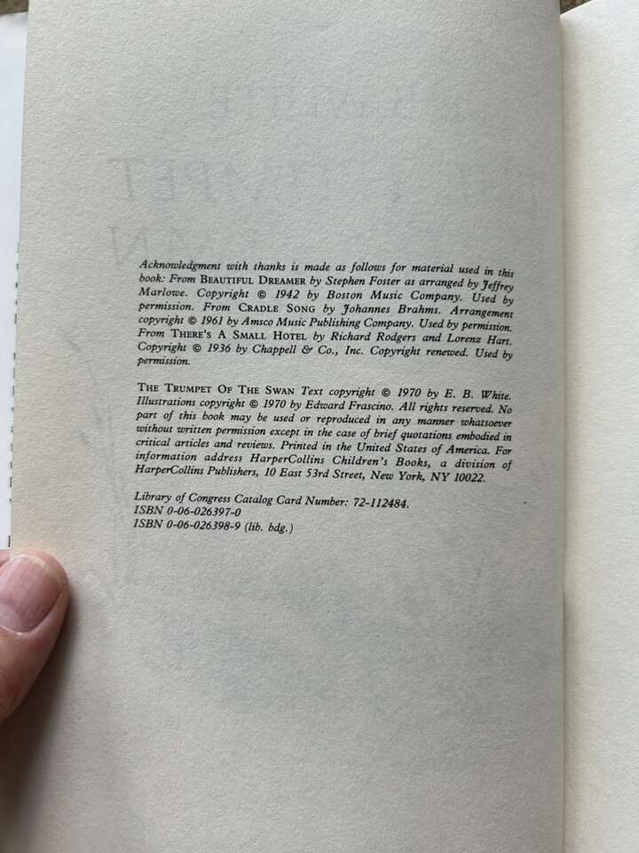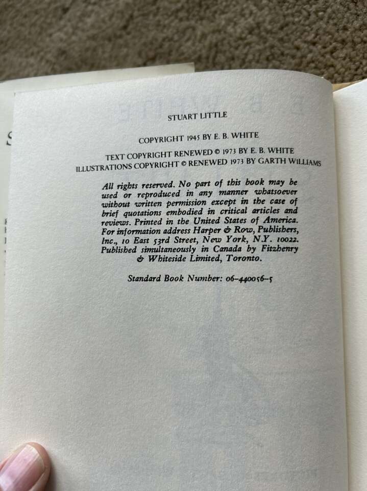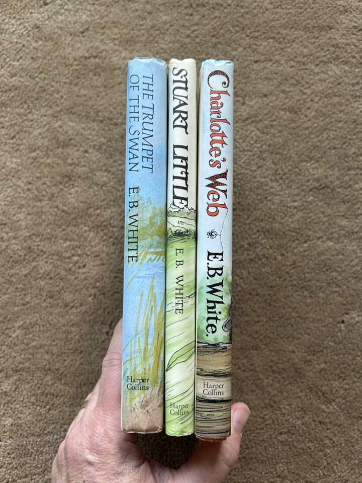 Three Classic Vintage books by E.B. White, illustrated by Edward Frascino and Garth Williams: The Trumpet of the Swan (1970, 210 pages), Stuart Little (1945/1973, 131 pages), and Charlotte’s Web (1952/1980, 184 pages). Harper Collins. Nice hardcovers in very good condition, including dust jackets. Too of Stuart Little jacket slightly damaged (see photos). Bottom of Charlotte’s Web spine slightly scratched. Text only. Cash or Venmo.