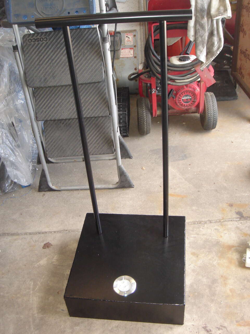 ALL METAL CONSTRUCTION BASE AND POLES HAS INTERGRATED LED LIGHT SYSTEM WITH CORDED PLUG BUILT IN UNDER THE BASE