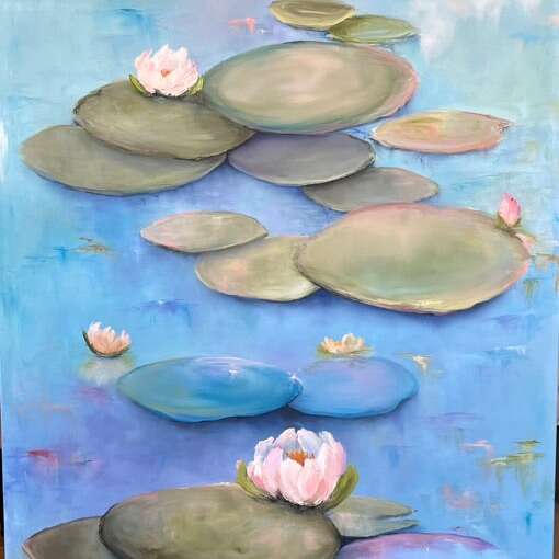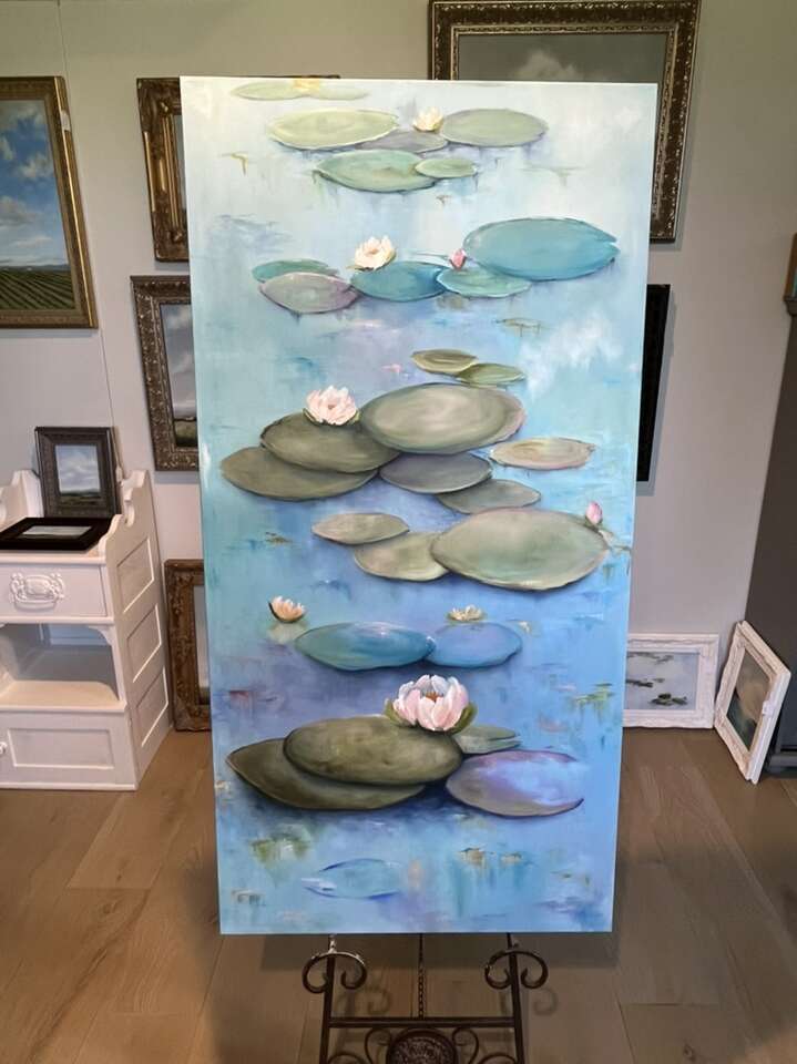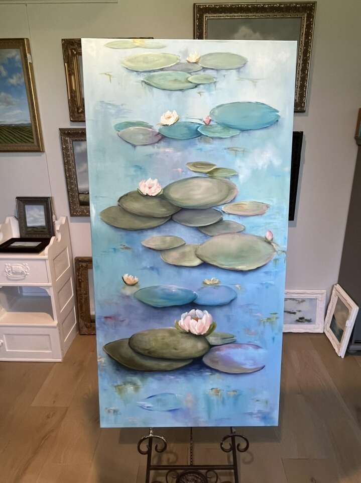 GooglePay24x48 inch impressionist Oil painting on stretched canvas with painted edges. Waterlilies. Original, single piece of work. Painted by seller, Signed and dated. I take Venmo @jen-hestad. $1,150.00
