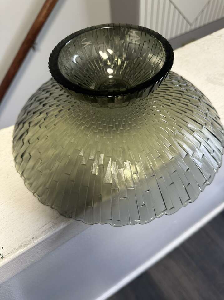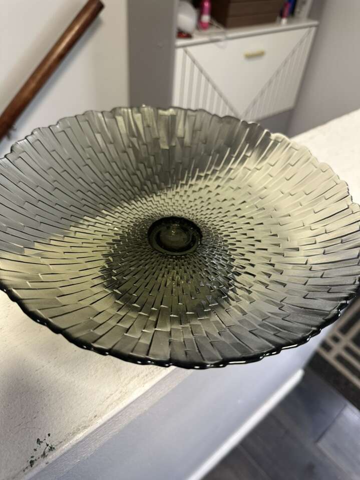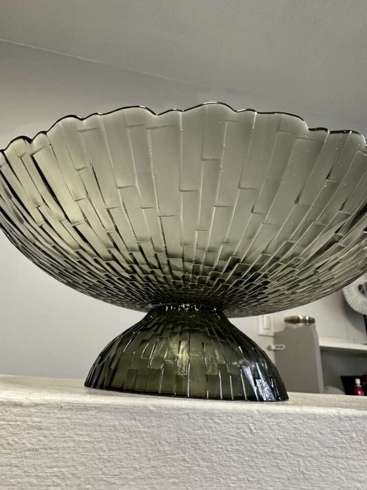 Grey Glass Pedestal Bowl Fruit Flowers Center Piece - 12 Tall X 12