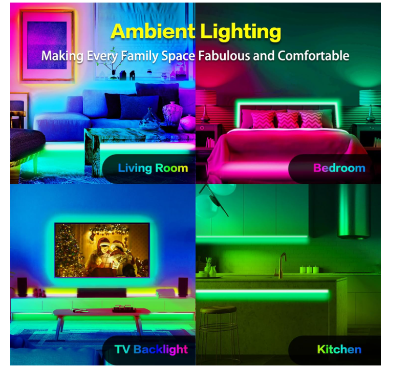 Customizable Timer:Take charge of your ambiance with scheduled lighting.Set the LED strip lights to automatically turn on and off via timer. Enjoy a warm welcome home when away.