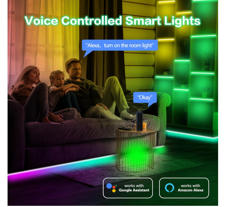 Voice Activated: Sync your led light strip with Alexa for hands free control. Command the LED lights for the bedroom to turn on and off,adjust colors or dim the brightness with simple voice prompts.