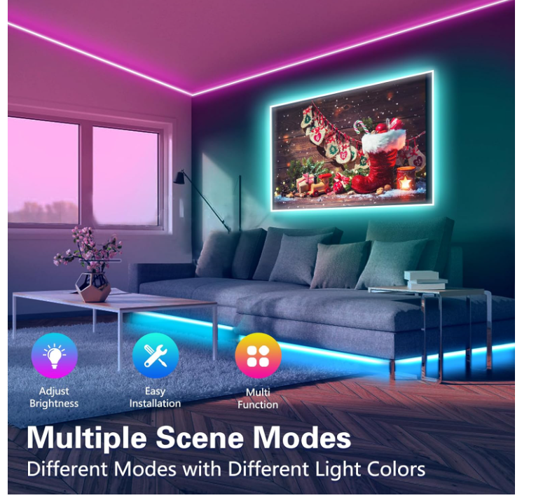 Music Sync:Elevate your space with LED lights sync to your favorite tunes.Enjoy various music modes that change with rhythm or melody,let your smart light strip dance to the beat.
