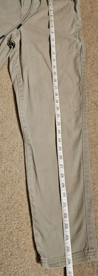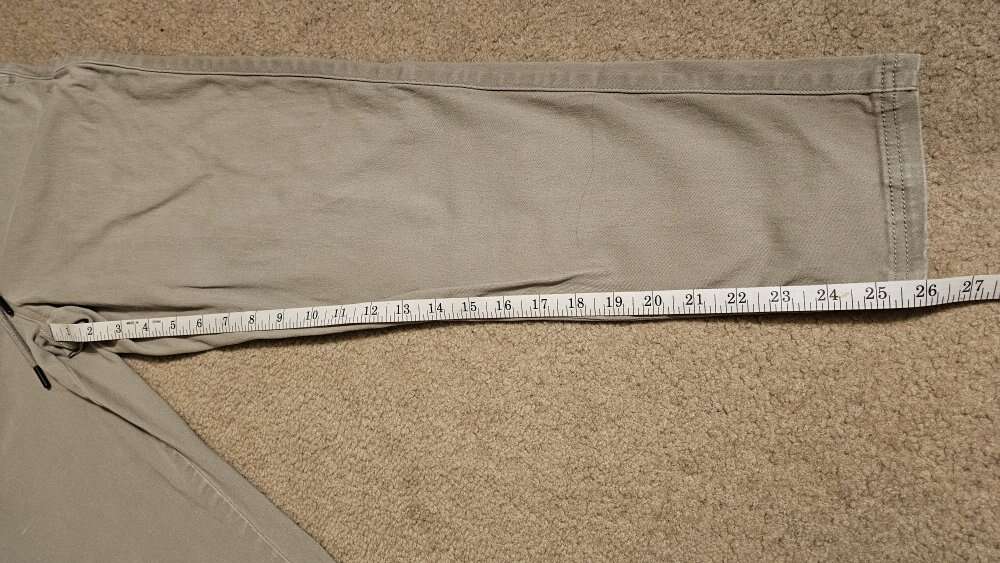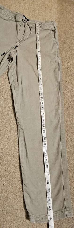 Waist is 28 inches, length is 36 inches and inseam is 26 inches. Pants are in good condition and has 2 spots as seen in pictures.