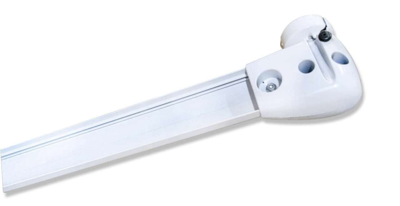 Features & details Made with Carefree's PREMIUM 15 oz.; vinyl, double hemmed and double stitched with virtually indestructible Red Gore TENARA thread to help ensure fabrics will last Simple manual operation; Fabric is attached using a standard awning rail (included); Each arm is attached at the bottom with three screws through the bottom support and pivot bracket; XL (Extra long) Extension of 30"; XL Arms-Fits window more than 36" Tall; Arms are 30" Tall Measurement of window awning roller is center of arm to center of arm; To calculate the awning length you need measure the window length (outside of frame to outside of frame) then add 6" and round up to the nearest window awning size available; Bottom Bracket on the awning arm measures 2" wide x 1" tall; Fabric will measure 6" less than the awning size stated