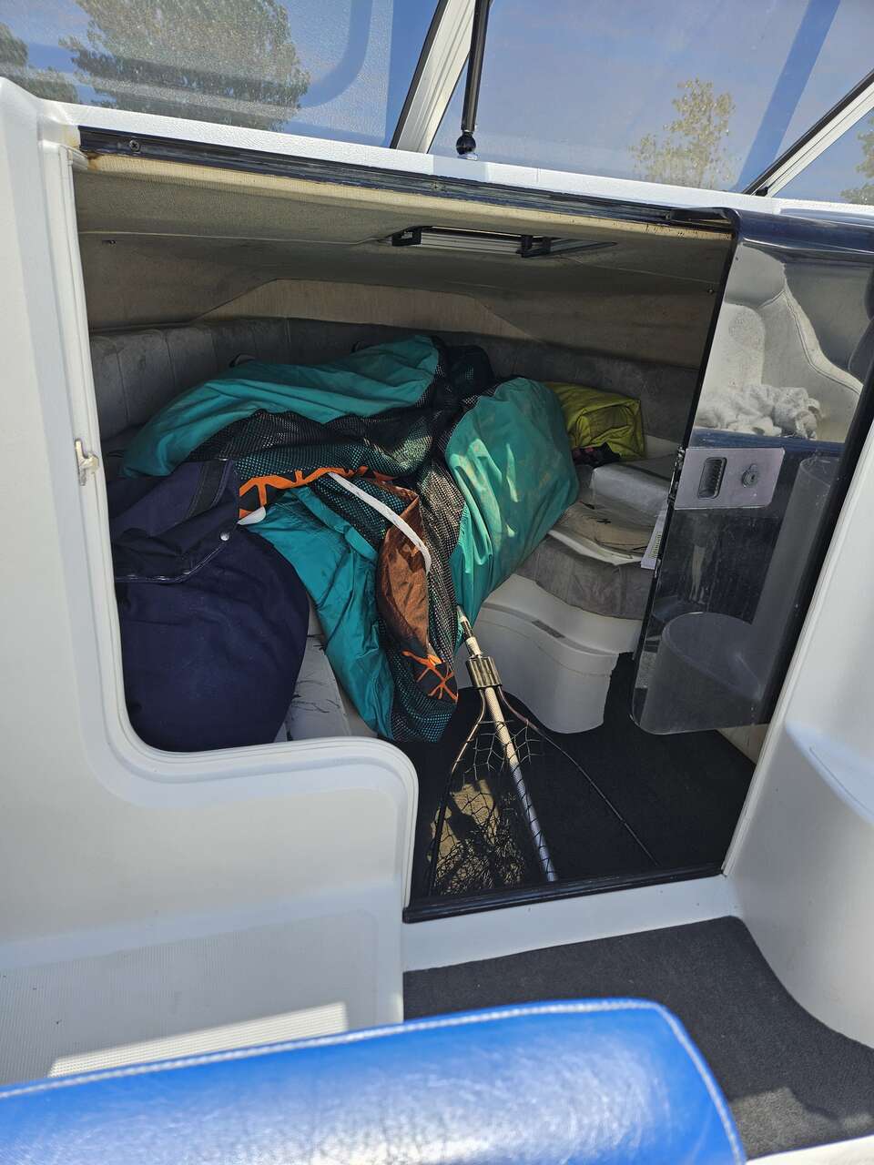 Before you come look it seats 5 adults. Not a open bow. Cuddy cabin. Portable toilet as well.