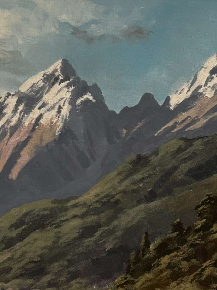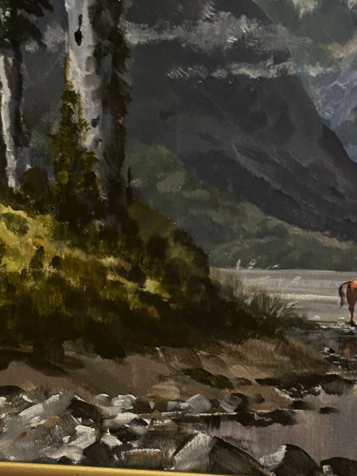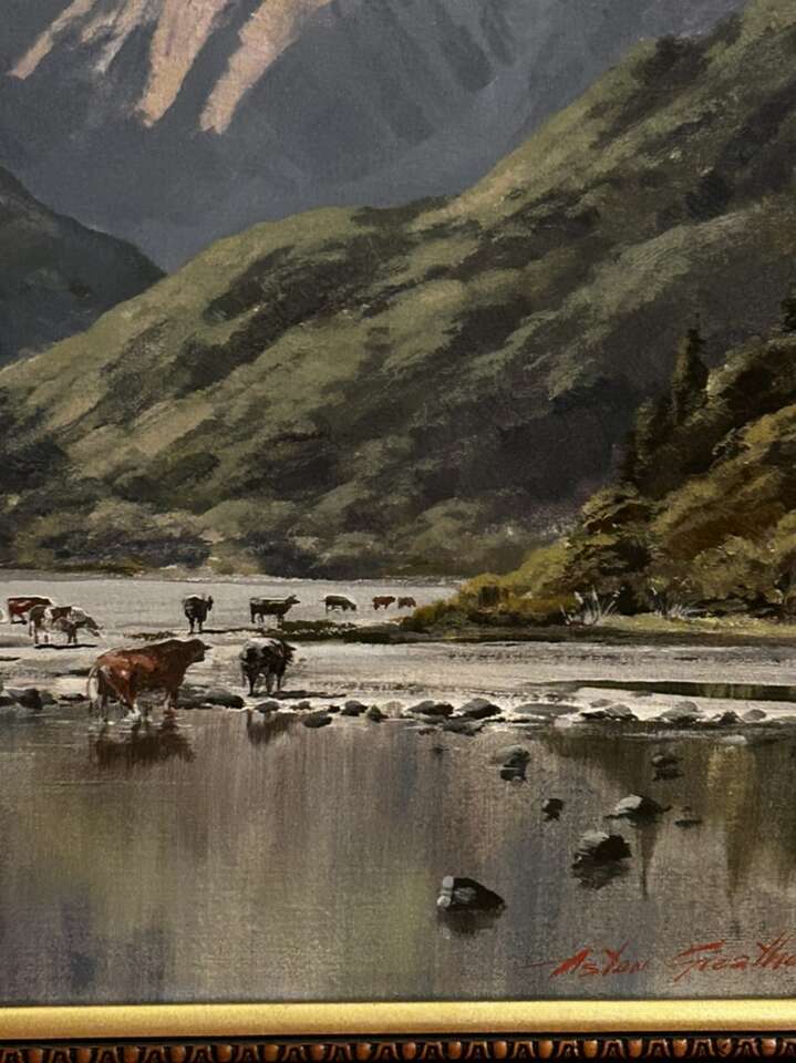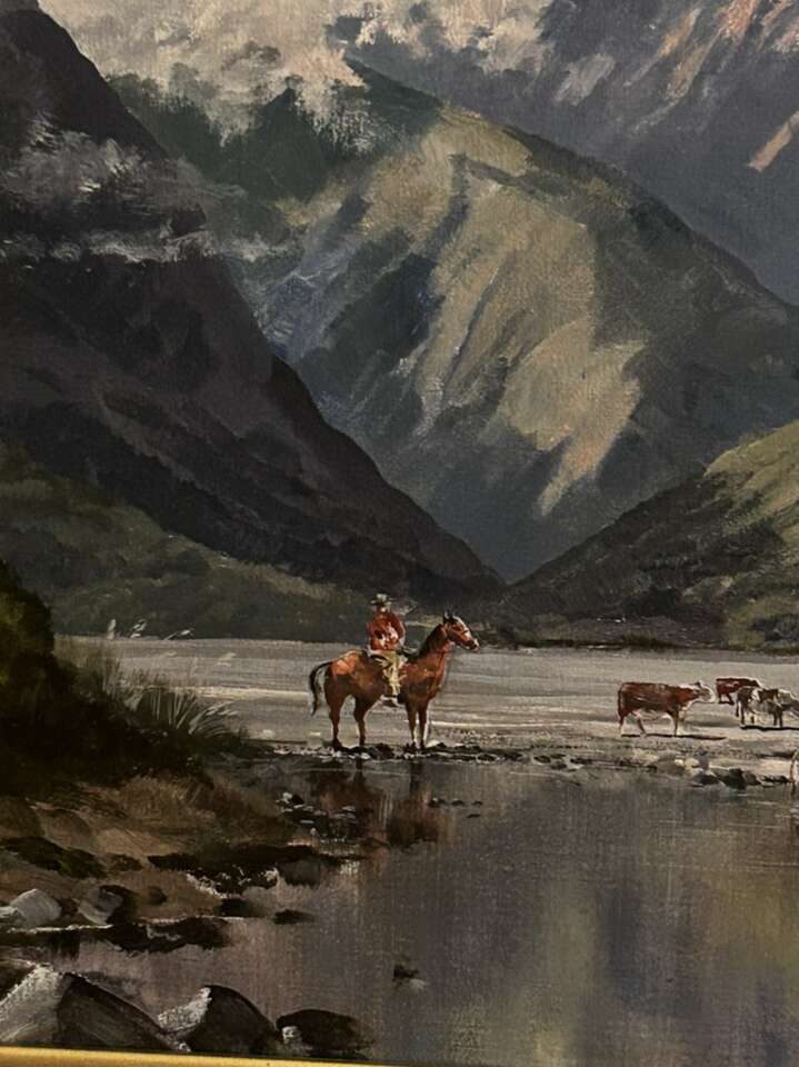Beautiful painting of cattle herder by a New Zealand artist. Aston . The back of the painting are notes to David S Baxer and his wife, General Authority Seventy of The Church of Jesus Christ of Latter-day Saints. He serve as the president for the Church in the Pacific areas.
