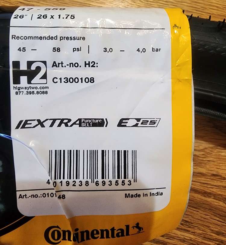 VenmoContinental Ride Tour Tire 26x1.75 Black Wire Hybrid MTB Tour Mountain Bike 26"