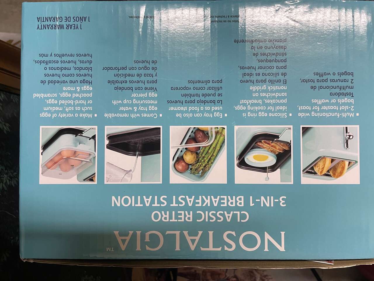 ZelleNew, sealed in original box. Adorable retro style breakfast maker! Toasts, hard boils, and fries. Light teal / Auqu color. See photo for dimensions and other product details. Must pick up - In Murray If interested msg Bridge