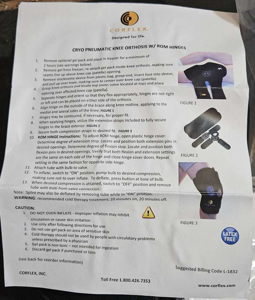 VenmoCRYO PNEUMATIC KNEE ORTHOSIS W/ROM HINGE New in original package, does not appear to have ever been used. I picked it up for my knee surgery but never used it as our insurance provided a different cooling device.
