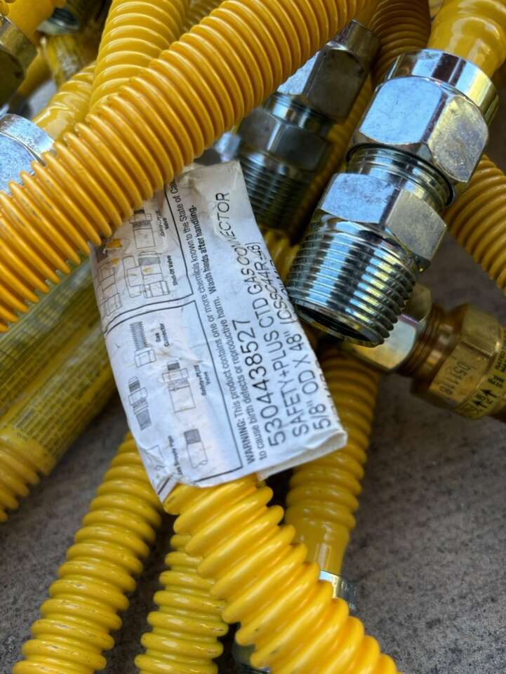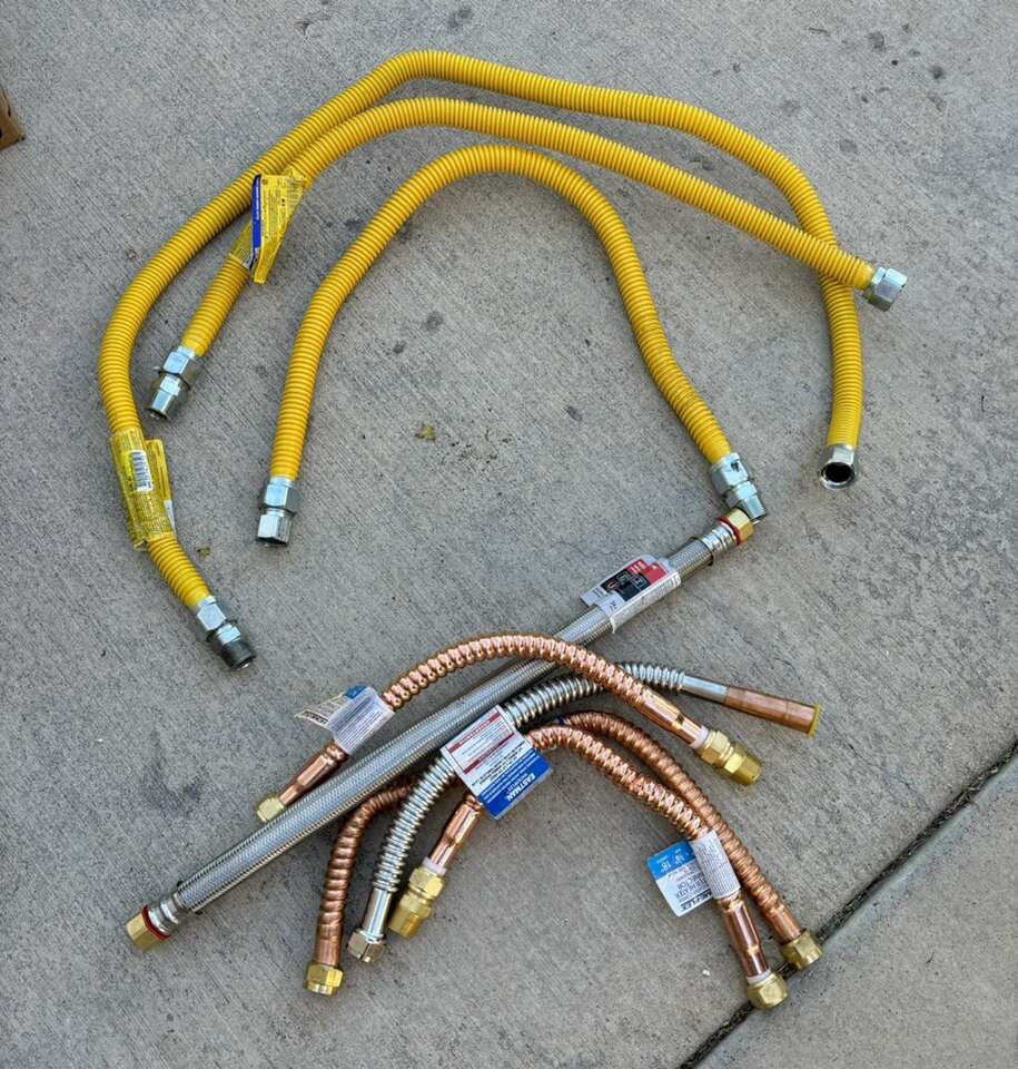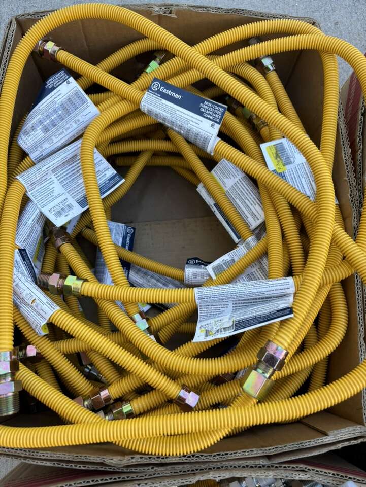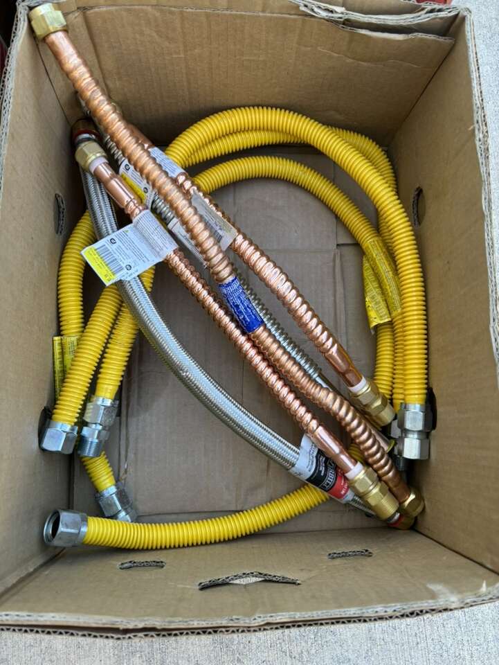Description- four bulk boxes of various gas and water lines (96 gas lines, 5 waterlines). See photos for more product information and specifications.