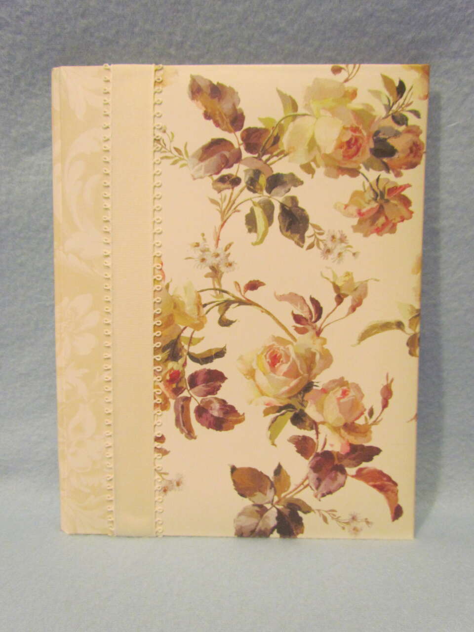 This beautiful Wedding Memory Book helps you record memories and mile stones of your courtship, engagement, and marriage on decorative pages. It has a padded cover with a lovely rose floral print & cream ribbon accent & pages are sprinkled with beautiful love poems throughout.