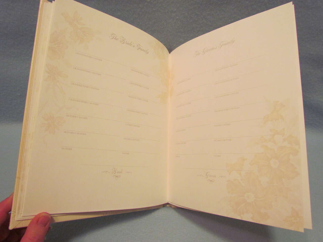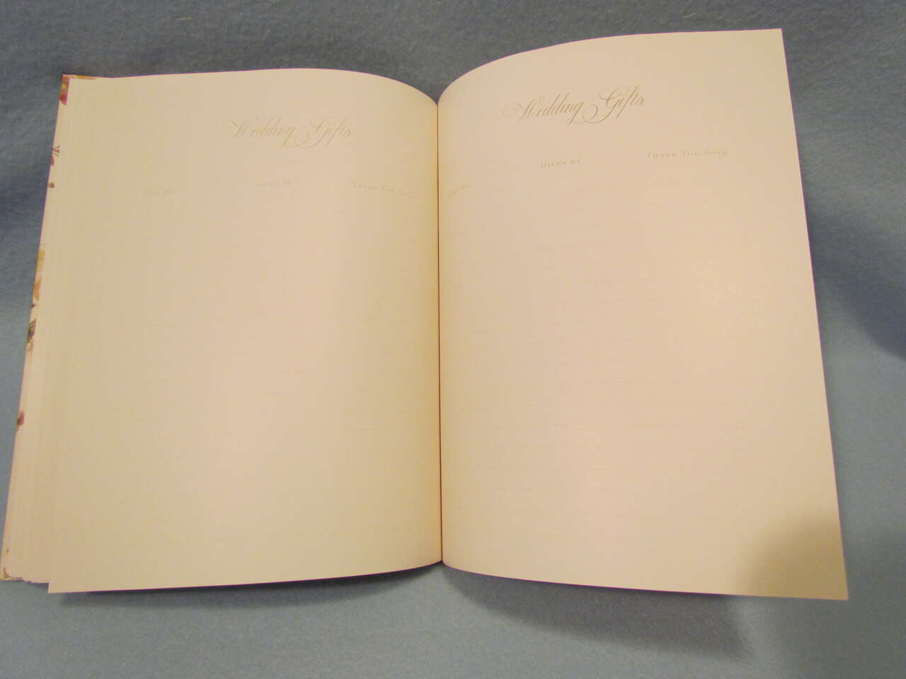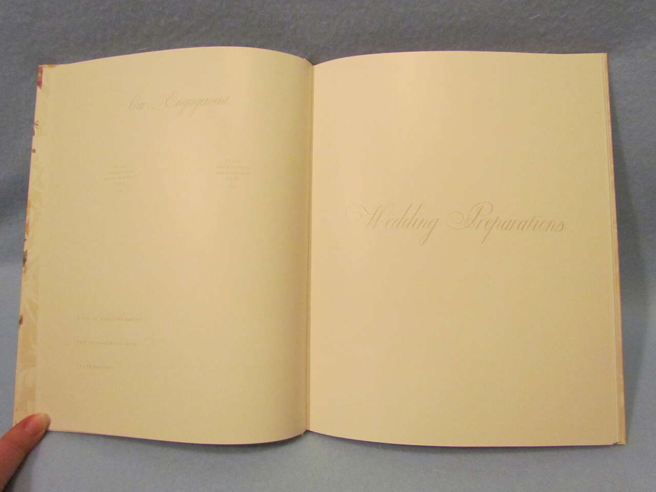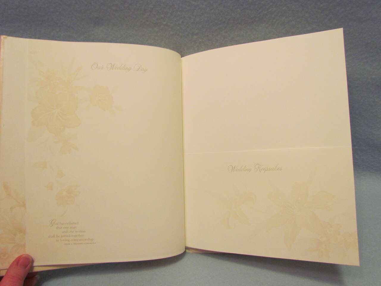 This lovely Wedding Memory Book helps you record memories and mile stones of your courtship, engagement, and marriage on decorative pages. This book is now out of print and a rare find. It has a padded cover with a floral design and the words “May God bless our wedding day and walk beside us through all our life together.” in a light golden foil.