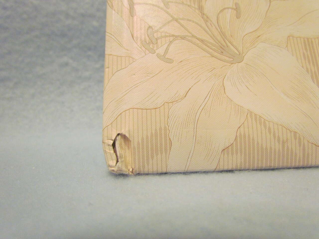 Book is in especially nice condition for its age (34 years old/1982), however, the bottom corner of the binding was dinged & therefore the front bottom left corner has a small ½” tear/split & the back bottom right corner has a tiny tear/split – please see pictures.