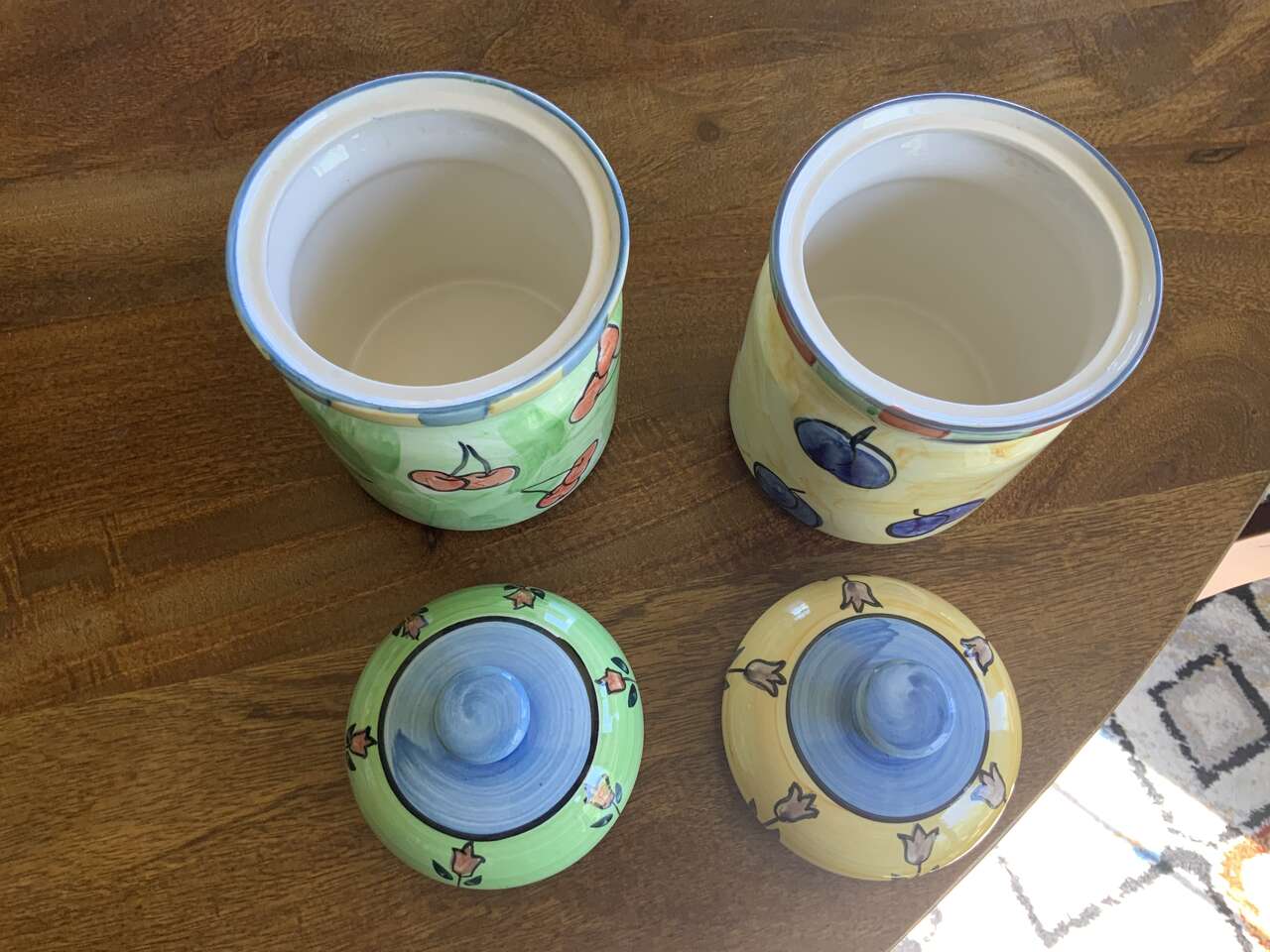BRAND NEW CERAMIC CANISTER SET. 8” TALL. CASH/VENMO ONLY. IF INTERESTED CALL OR TEXT 801-360-0388