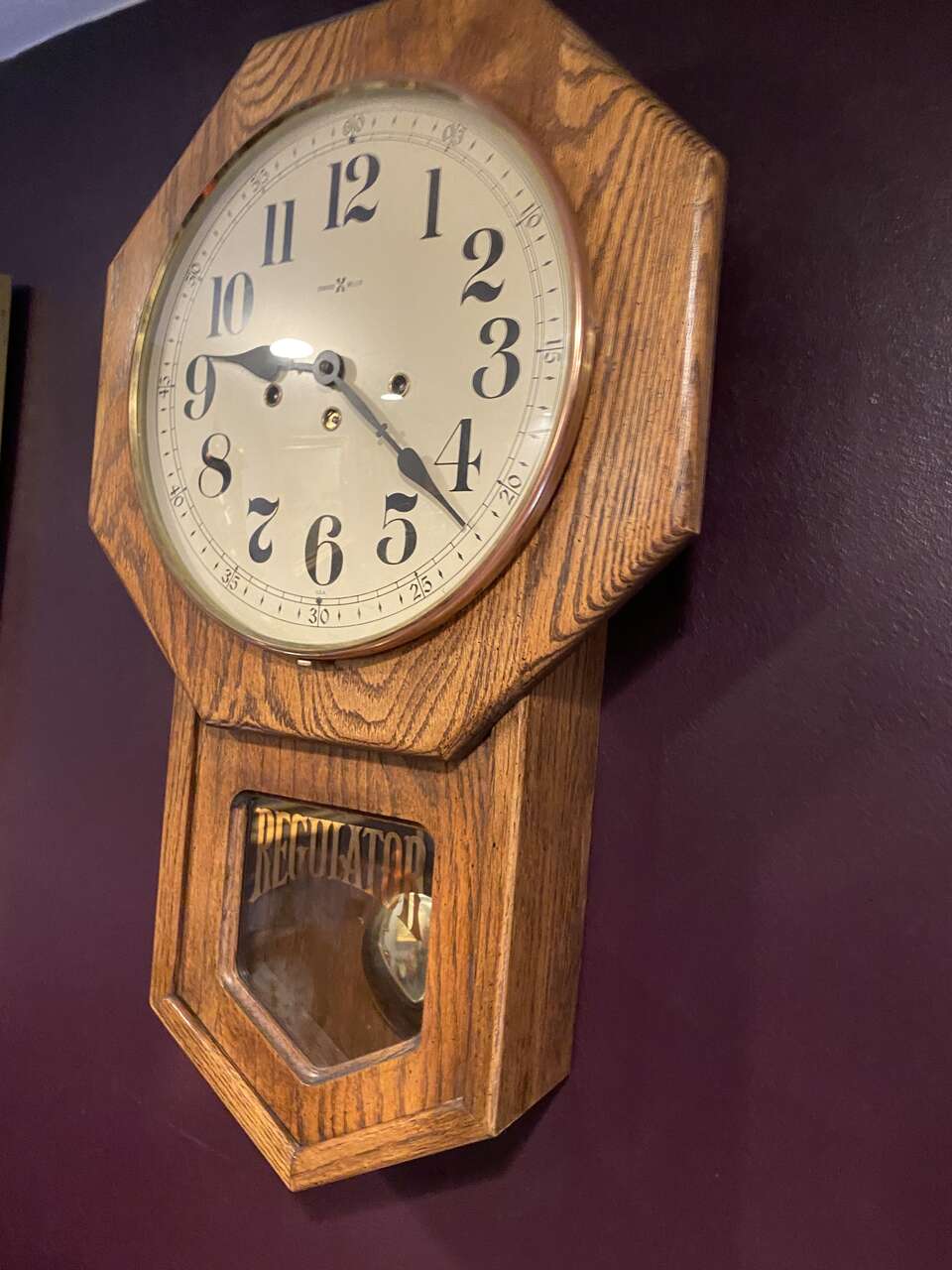 Antique Howard Miller regular wall clock keeps accurate time. Very good condition includes key $150 cash or own. Call or text Charlie at 650-468-6168 thank you.