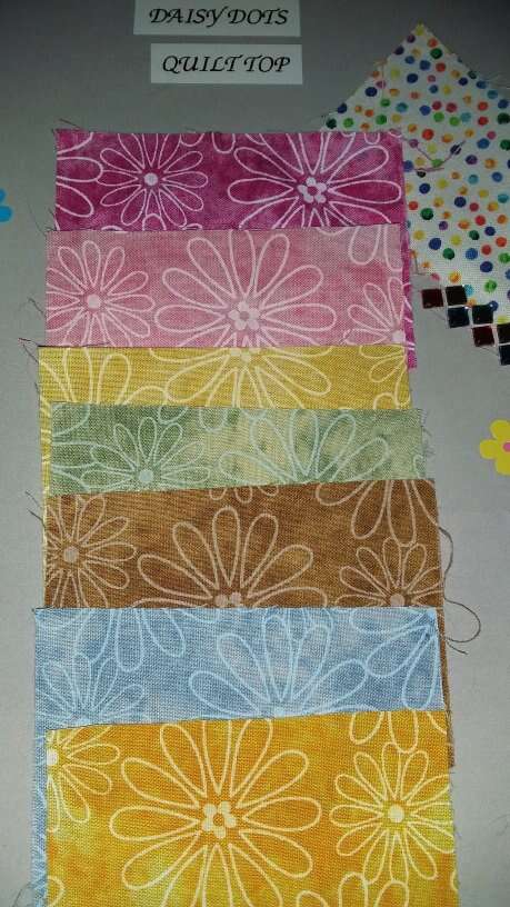 Unique quilt....the pattern is vertical...7 daisy prints combine with polka dots to make a quilt top that is 51 x 54 inches. Ready to sew, illustrated instructions....easy enough for beginners...