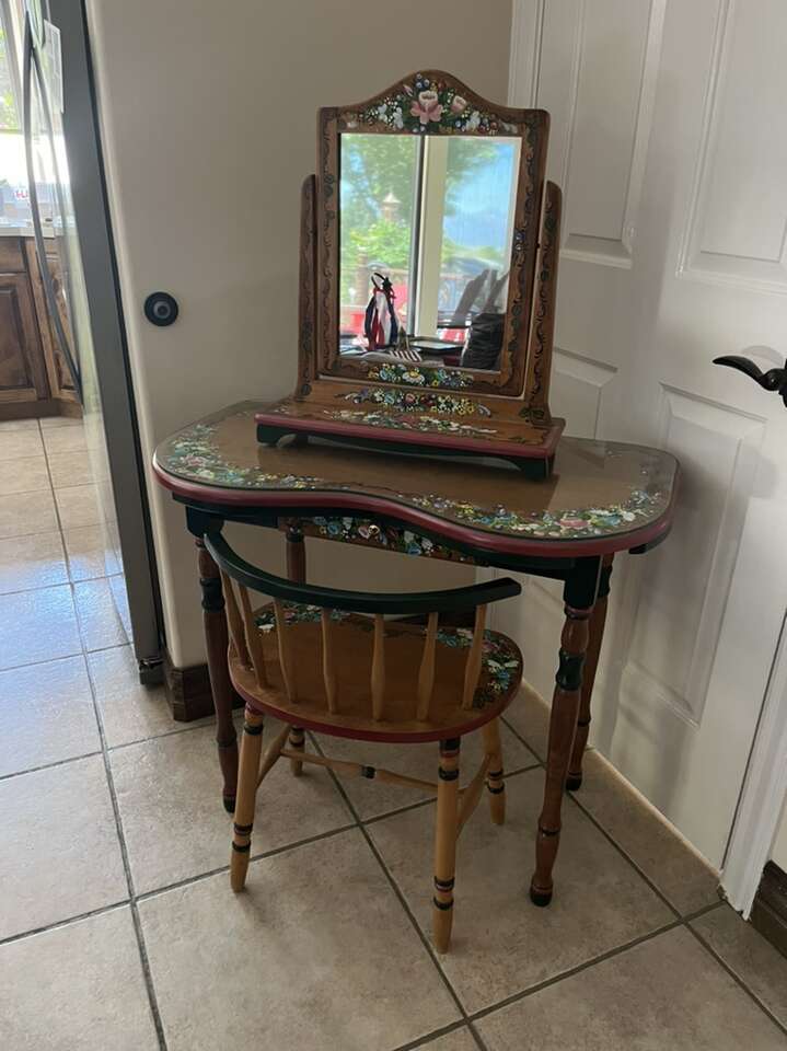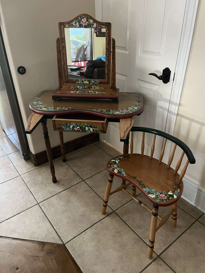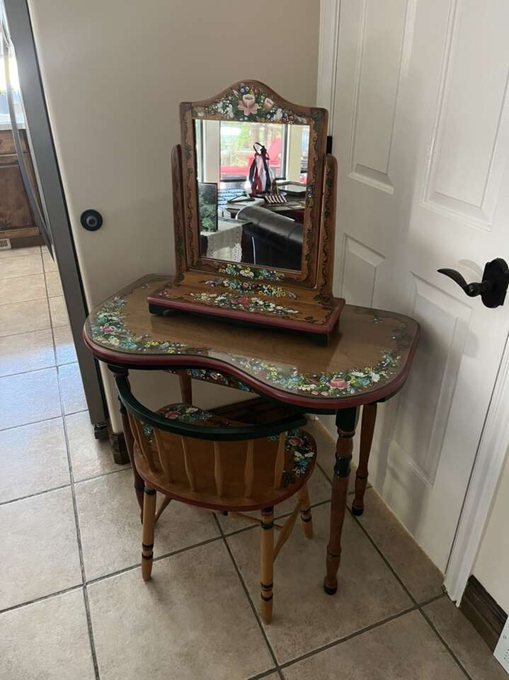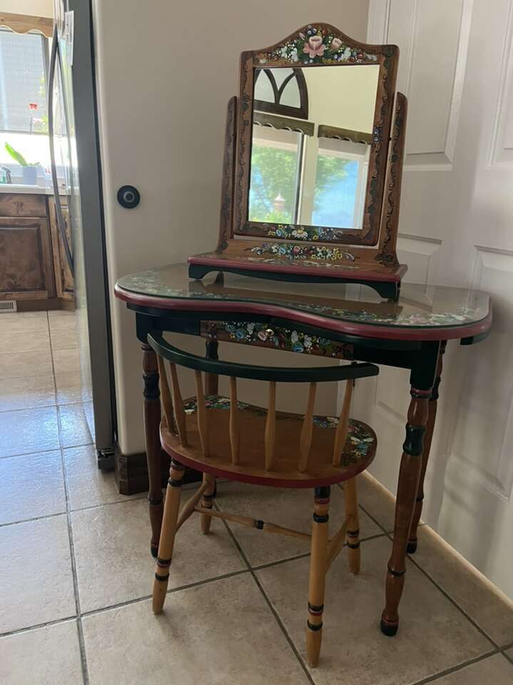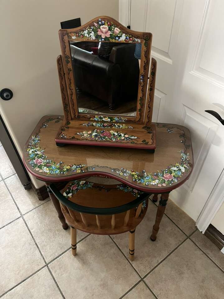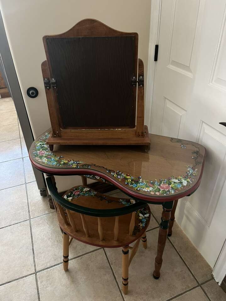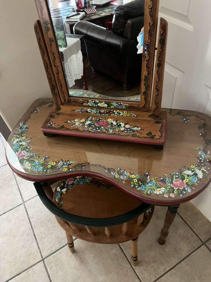 Beautiful unique vanity table set! Hand painted with drawer! Table 30 1/2 T 33W 18 1/2D