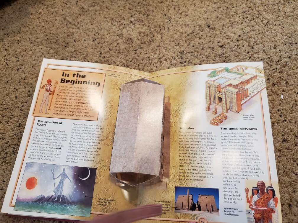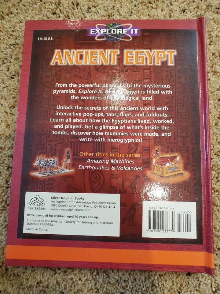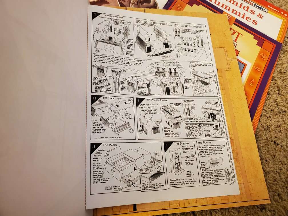 Ancient Egypt book. 32 pages with pop ups and flaps. Egypt A Cultural Resource Guide 25 pages Make This Egyptian Temple to cut out and build Egypt Kush and Aksum 48 pages Pyramids and Mummies wipe off chart Cash only.