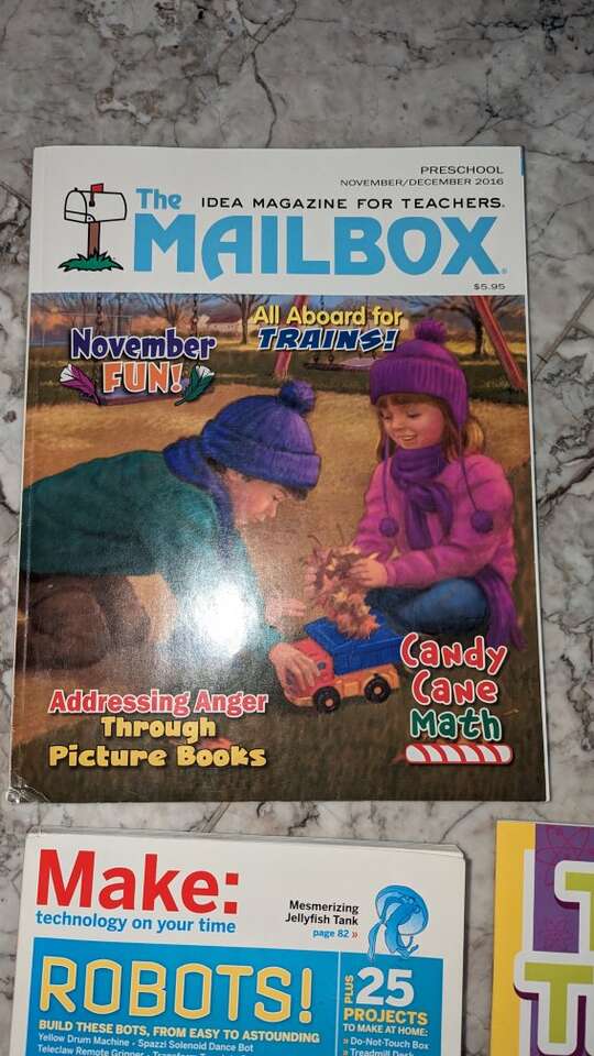 ZelleSet Of 4 Learning Magazines, Make: Robotics Vol 27, Brainetics, Mailbox, Nat Geo
