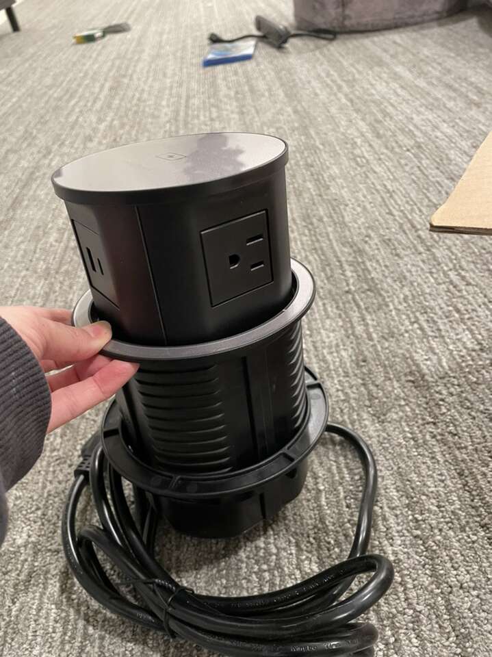 Black Automatic Pop Up Outlet Socket Retractable Hidden RecessedPower Strip Charger. Bought to install in my kitchen remodel and decided to go another route. Over $100 new asking $50
