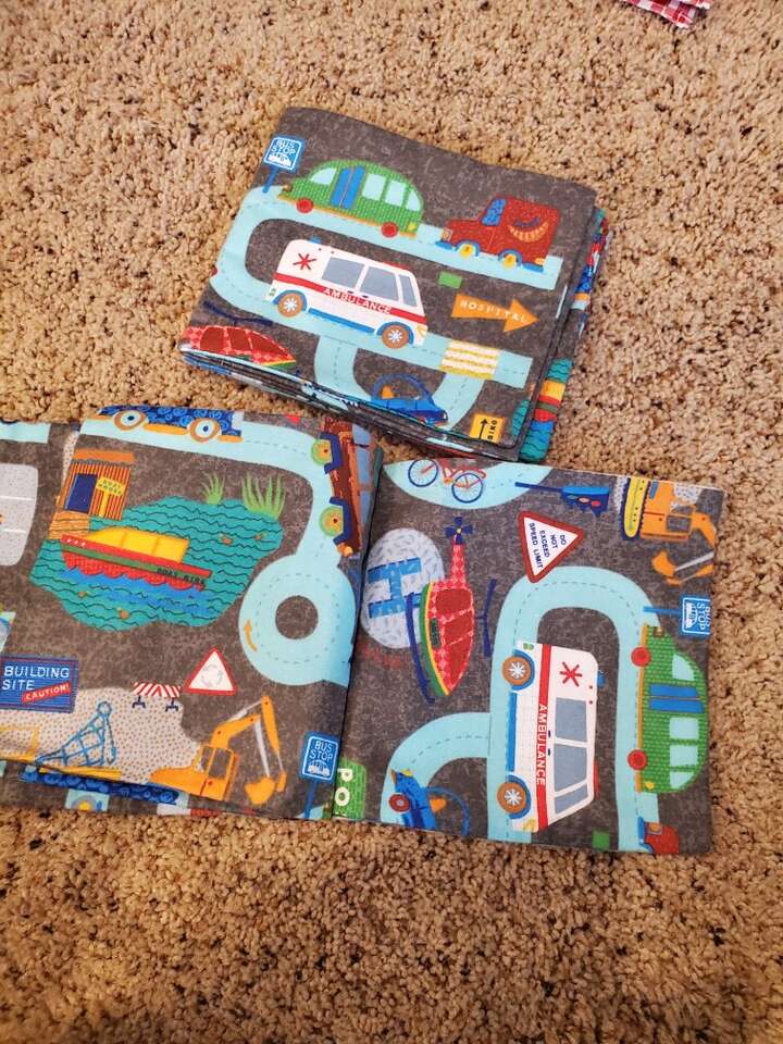 Cloth books for babies. These use brand new material and are fun for babies to touch and turn pages.