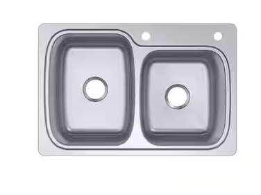 Blending with a variety of kitchen styles, this Verse stainless-steel sink offers 2 deep bowls to keep clean and dirty dishes separate. When installed as a top-mount sink, the low-profile rim simplifies cleanup, allowing you to sweep crumbs and liquid into the sink and out of sight. An engineered sound-absorption system significantly reduces disposal and dishwashing noise for a quieter kitchen environment.