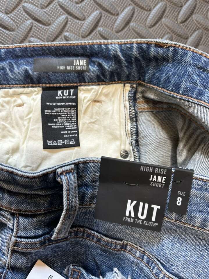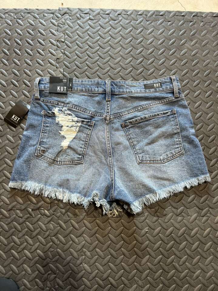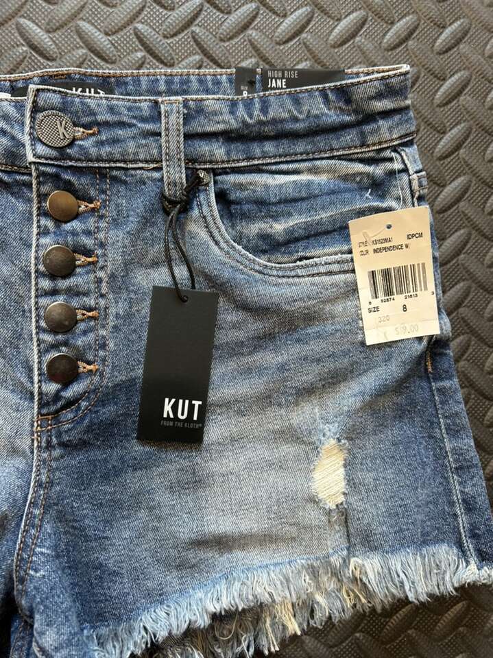 New it tags Kut from the Kloth Jane size 8 high rise button fly frayed denim shorts. These are simply adorable and the epitome of summer. Soft, lightweight breathable denim. Flattering fit. Hugs your figure and all the right places. 2 inch inseam. Vintage wash. These are a perfect summer staple. They are over $70 online. Clean non-smoking home. Cash or Venmo. Porch pick up from Alpine.