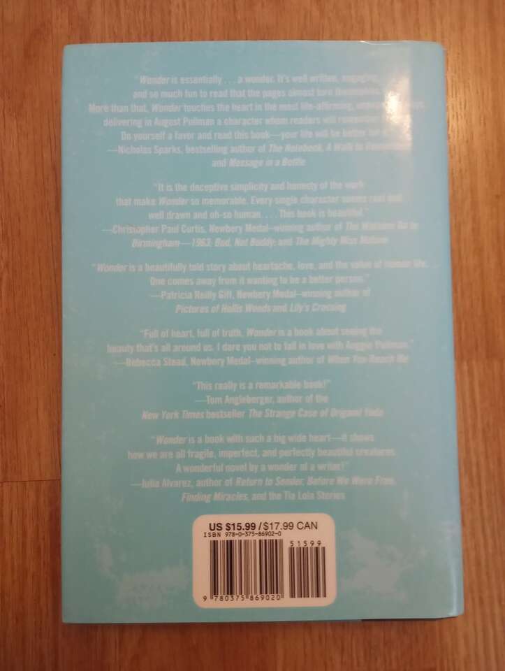 VenmoGently used hardcover copy of Wonder by R.J. Palacio. In great condition and from a smoke-free home. $8 cash or Venmo. Will hold with Venmo. This is a really great book. Text if interested. Feel free to check out my other ads-lots for sale including lots of other children's and tween books and many other items.