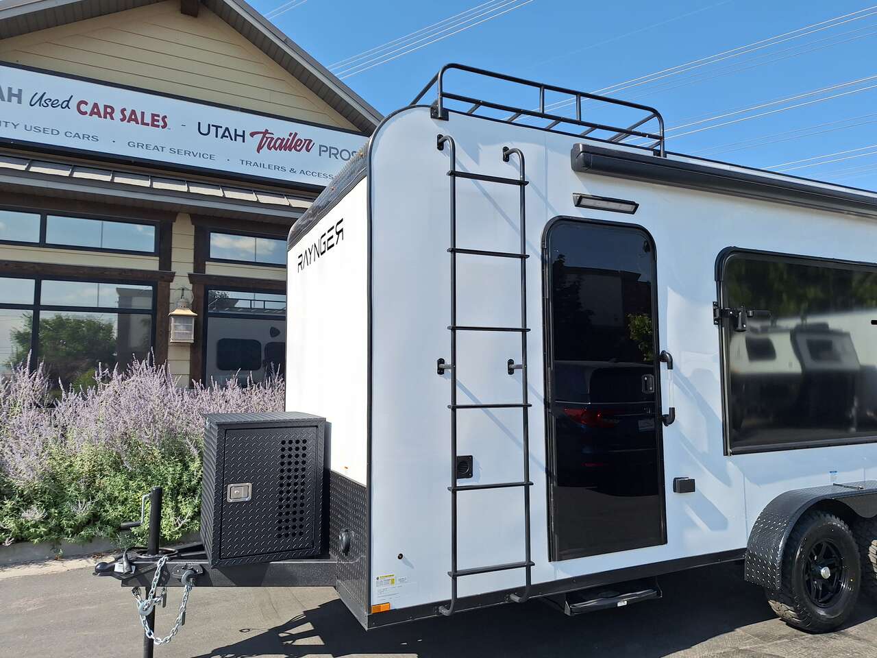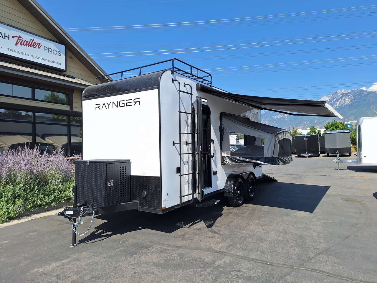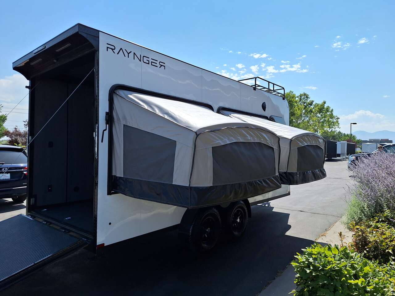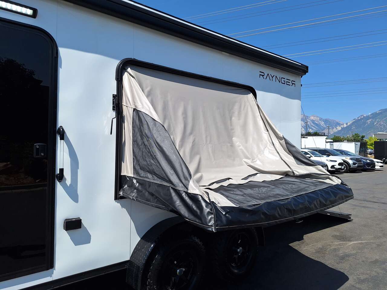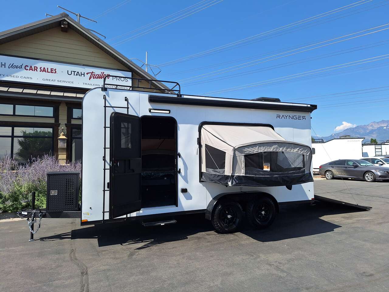 LIMITED TIME $384 A MONTH WITH ZERO DOWN WITH OUR SPECIAL LOCAL CREDIT UNION PARTNER!!! NO PRE-PAYMENT PENALTIES!!! SLEEPS 6!!! 3x POP OUT TENT/BEDS!!! NEW 2025 MODEL!!! WILL FIT ANY STOCK SIDE BY SIDE UTV!!! RAYNGER PREMIUM OFF ROAD TOY HAULER CAMPER!!! 18 INCH GROUND CLEARANCE!!! OFF ROAD TIRES!!! FULLY INSULATED!!! HEATING AND A/C!!! WET SOUND STEREO!!! TWO FOLD OUT/POP OUT TENTS WITH MATTRESS!!! CARGO BASKET!!! LED LIT AWNING!!! 84 Inch Rear Entry Height/87 INCH INTERIOR HEIGHT!!! 77 Inch Rear Entry Width!!! Aluminum Ventilated Locking Generator Box!!! UPGRADED TORSION AXLES!!! 14.2 Foot Long Garage Space!!! And Much MUCH MORE!!! Check out our Specs!!! Also available in 18 foot models. 18 Foot Models can have 3 Fold Out Beds/Pop Out Tents. 16 Foot and 18 Foot Models will fit ANY stock 4 Seater Side by Side • 6” I Beam Frame• Flat Top Design• Flat Front Design• Wall Posts 16” on Center• Cross Members 16” on Center• Roof Bows 16” on Center• Rust Inhibiting Z-Tech Protection on Chassis• Ameraguard on Tongue• Ameraguard on Rear Bumper• Ameraguard Around All Door Openings and Stepwell• Ameraguard Around Edges of Ramp Door• 3500 LB Spring Axles• 2-5/16” Coupler• One-Piece Aluminum Roof• ST235/75R15 Aluminum Wheels with Chrome Center Caps• 2000# Ramp Door with Eberhard Latch• 30” Tempered Glass RV Door with Screen Door• .030 Exterior Metal with Screwless Sides• 24” Black Stoneguard• 3” Black Bottom Trim• Sand Pad• Black Door Hold• 2.7mm Charcoal Textured Vinyl Ceiling • 9mm Charcoal Textured Vinyl Walls• 3/4” Engineered Wood Floor with Rubber Coin Overlay• (6) 1200 LB Floor D rings Installed with Backer Plates• LED Clearance Lights and Tail Lights• LED Back-up Lights• No Show Wheel Box• Spoiler with Toggle Switch• RV Step• 7’ Interior• (2) 17” Chrome Base Lights with Switch• (1) Black 17” Spot Light with Switch• (1) 30 Amp Panel with Marine Plug• A/C Unit with Heat Strip• (3) Interior Recepts• (1) Exterior Recept• 12V Battery and Charge Line• Prep for Backup Camera• Wet Sounds System• (3) Blue Interior Cabinet Lights• (1) 6’ Section of Flex Lights• Black ATP Rear Header and Hoop• Black ATP Fenders• Insulated Walls & Ceiling• Base Cabinets• Overhead Cabinets with Netting Over Compartments• Pop Out Tent• Black ATP Storage/Generator Box Mounted On Tongue