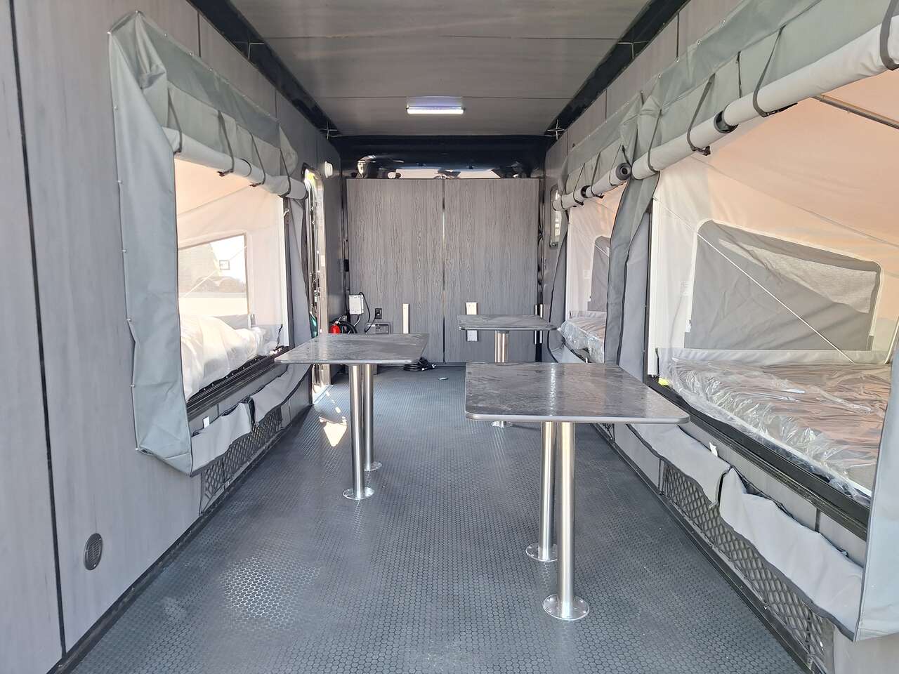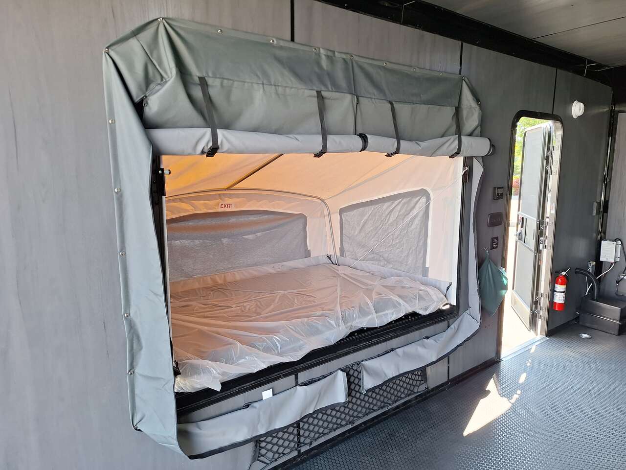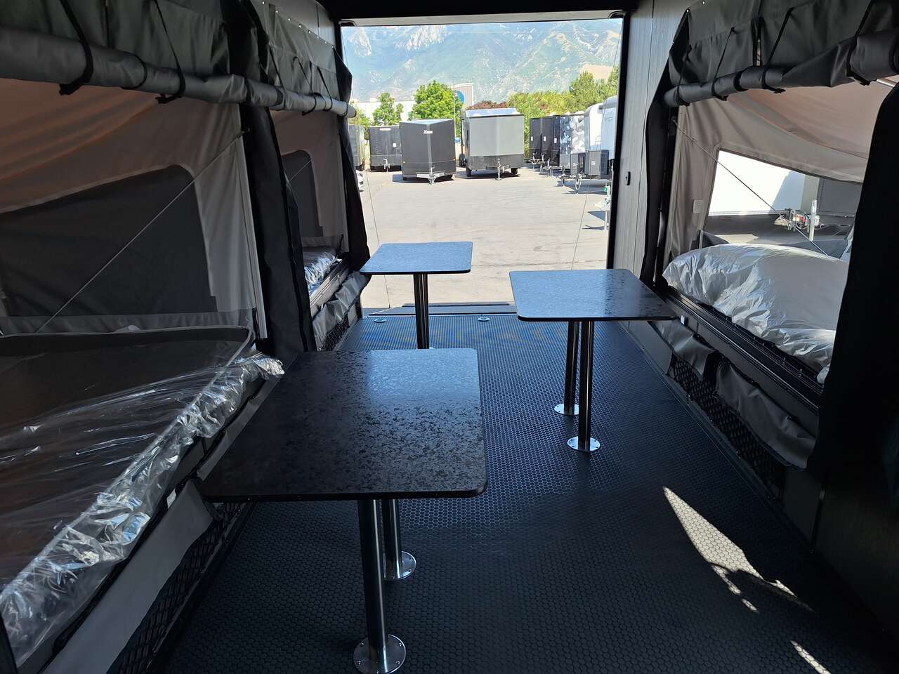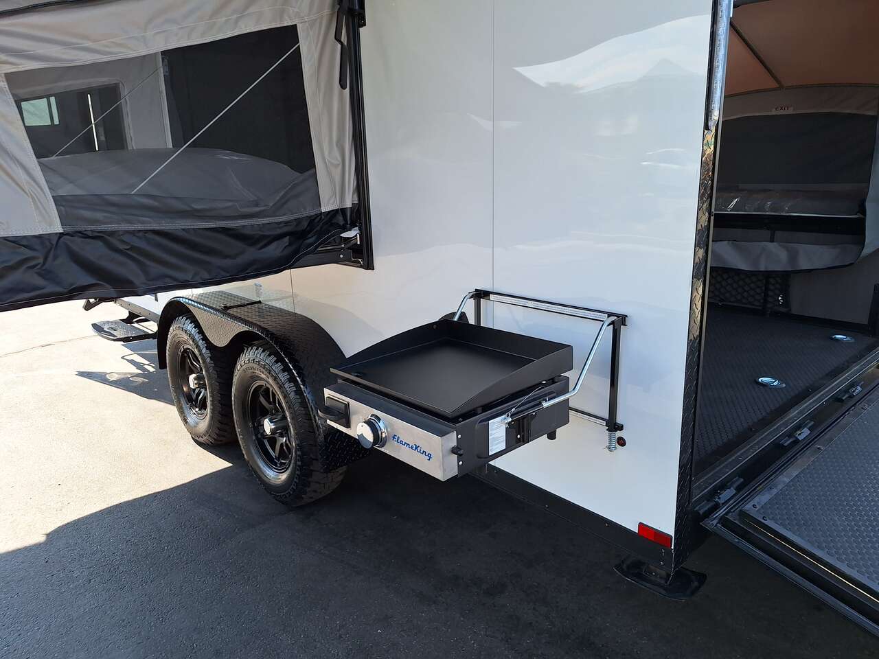 LIMITED TIME $384 A MONTH WITH ZERO DOWN WITH OUR SPECIAL LOCAL CREDIT UNION PARTNER!!! NO PRE-PAYMENT PENALTIES!!! SLEEPS 6!!! 3x POP OUT TENT/BEDS!!! NEW 2025 MODEL!!! WILL FIT ANY STOCK SIDE BY SIDE UTV!!! RAYNGER PREMIUM OFF ROAD TOY HAULER CAMPER!!! 18 INCH GROUND CLEARANCE!!! OFF ROAD TIRES!!! FULLY INSULATED!!! HEATING AND A/C!!! WET SOUND STEREO!!! TWO FOLD OUT/POP OUT TENTS WITH MATTRESS!!! CARGO BASKET!!! LED LIT AWNING!!! 84 Inch Rear Entry Height/87 INCH INTERIOR HEIGHT!!! 77 Inch Rear Entry Width!!! Aluminum Ventilated Locking Generator Box!!! UPGRADED TORSION AXLES!!! 14.2 Foot Long Garage Space!!! And Much MUCH MORE!!! Check out our Specs!!! Also available in 18 foot models. 18 Foot Models can have 3 Fold Out Beds/Pop Out Tents. 16 Foot and 18 Foot Models will fit ANY stock 4 Seater Side by Side • 6” I Beam Frame• Flat Top Design• Flat Front Design• Wall Posts 16” on Center• Cross Members 16” on Center• Roof Bows 16” on Center• Rust Inhibiting Z-Tech Protection on Chassis• Ameraguard on Tongue• Ameraguard on Rear Bumper• Ameraguard Around All Door Openings and Stepwell• Ameraguard Around Edges of Ramp Door• 3500 LB Spring Axles• 2-5/16” Coupler• One-Piece Aluminum Roof• ST235/75R15 Aluminum Wheels with Chrome Center Caps• 2000# Ramp Door with Eberhard Latch• 30” Tempered Glass RV Door with Screen Door• .030 Exterior Metal with Screwless Sides• 24” Black Stoneguard• 3” Black Bottom Trim• Sand Pad• Black Door Hold• 2.7mm Charcoal Textured Vinyl Ceiling • 9mm Charcoal Textured Vinyl Walls• 3/4” Engineered Wood Floor with Rubber Coin Overlay• (6) 1200 LB Floor D rings Installed with Backer Plates• LED Clearance Lights and Tail Lights• LED Back-up Lights• No Show Wheel Box• Spoiler with Toggle Switch• RV Step• 7’ Interior• (2) 17” Chrome Base Lights with Switch• (1) Black 17” Spot Light with Switch• (1) 30 Amp Panel with Marine Plug• A/C Unit with Heat Strip• (3) Interior Recepts• (1) Exterior Recept• 12V Battery and Charge Line• Prep for Backup Camera• Wet Sounds System• (3) Blue Interior Cabinet Lights• (1) 6’ Section of Flex Lights• Black ATP Rear Header and Hoop• Black ATP Fenders• Insulated Walls & Ceiling• Base Cabinets• Overhead Cabinets with Netting Over Compartments• Pop Out Tent• Black ATP Storage/Generator Box Mounted On Tongue