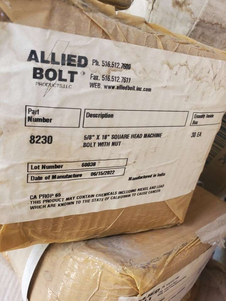 5/8"X18" Square HeadMachine Bolt with Nut. I have 8 boxes each box has 30 bolts. Asking $150 per each box