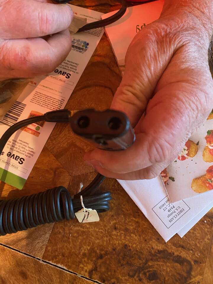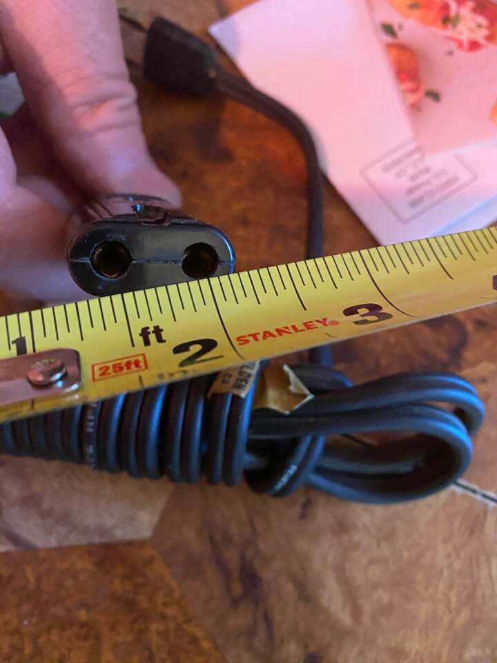 have 3 different 2 prong power cords. goes to older toasters, waffle iron, appliances etc. the measurement is the same on all 3 just have different shape female ends. I bought em for my old toaster, but too small. still looking. $5 each. text if interested