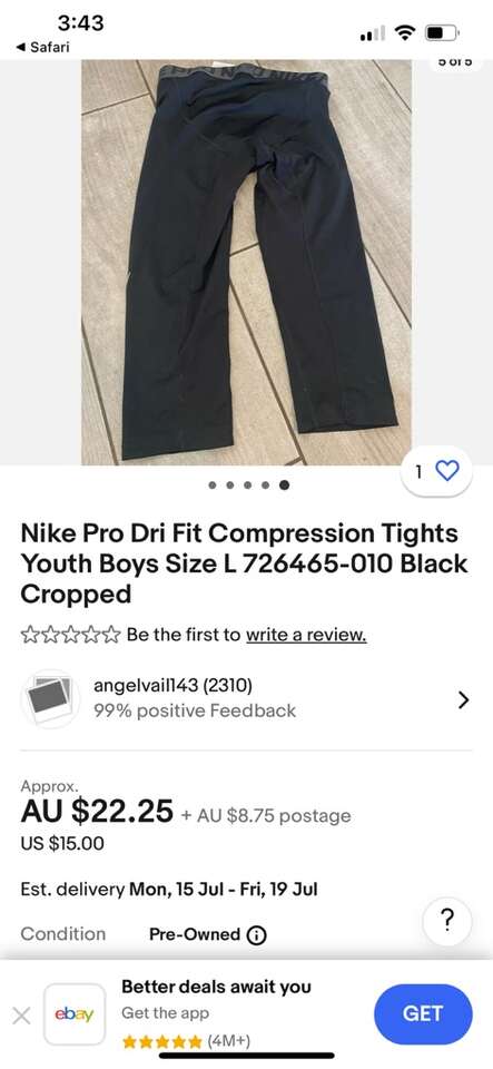 VenmoLike new Nike Compression tights capri black in big boys size large. Waist measures 24 inches inseam measures 9 inches and total length from waistband to hem is 23 inches. Clean smoke free home. No snags or defects. I honestly don’t think my kid ever wore these. Cash or Venmo. Porch pickup from Alpine.