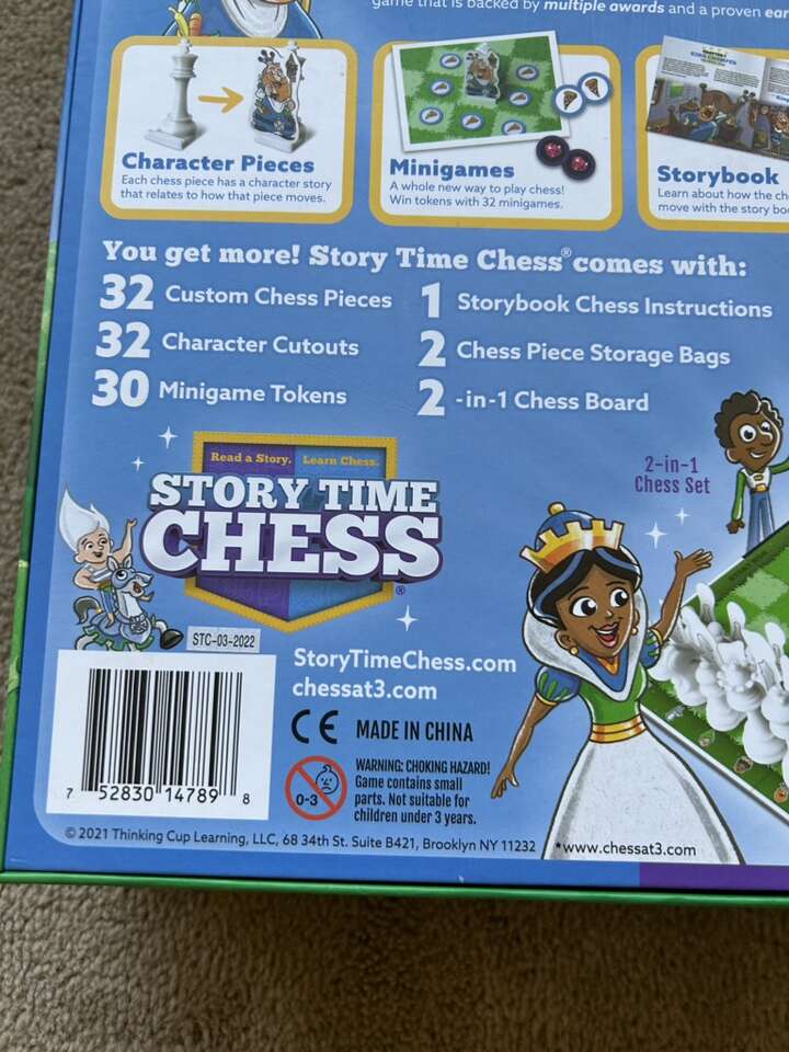 COMPLETE Story Time Chess: Read a Story, Learn Chess. 2-4 players, ages 3+. By Thinking Cup Learning, 2021. Award-winning, high-quality game. Complete, no missing pieces. Excellent condition. Text only. Cash or Venmo.