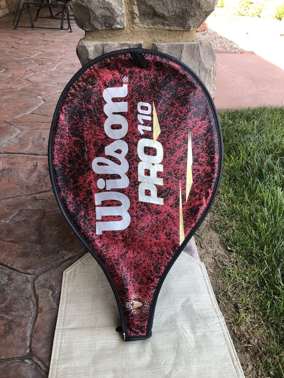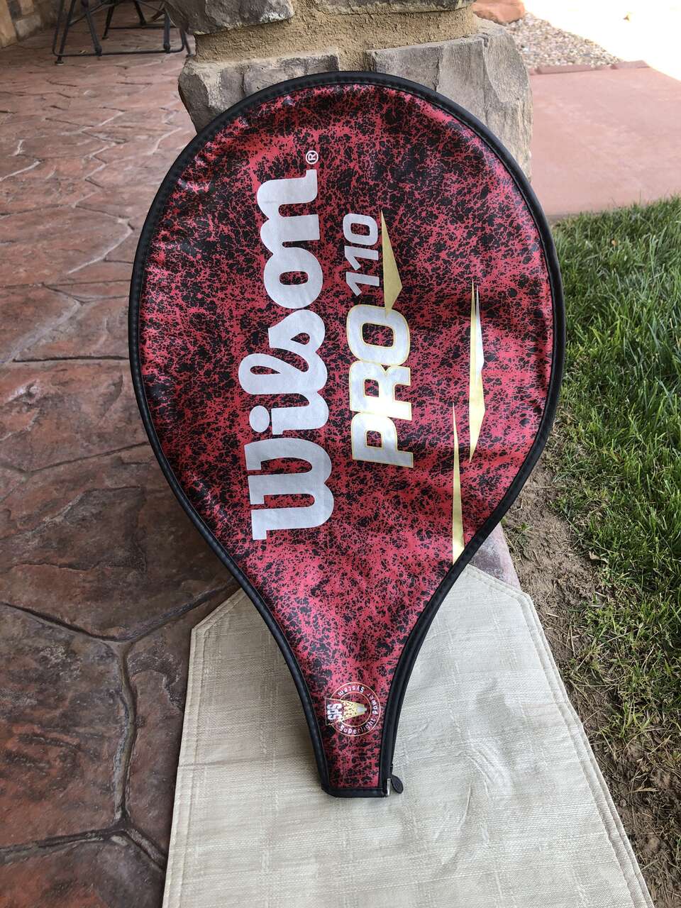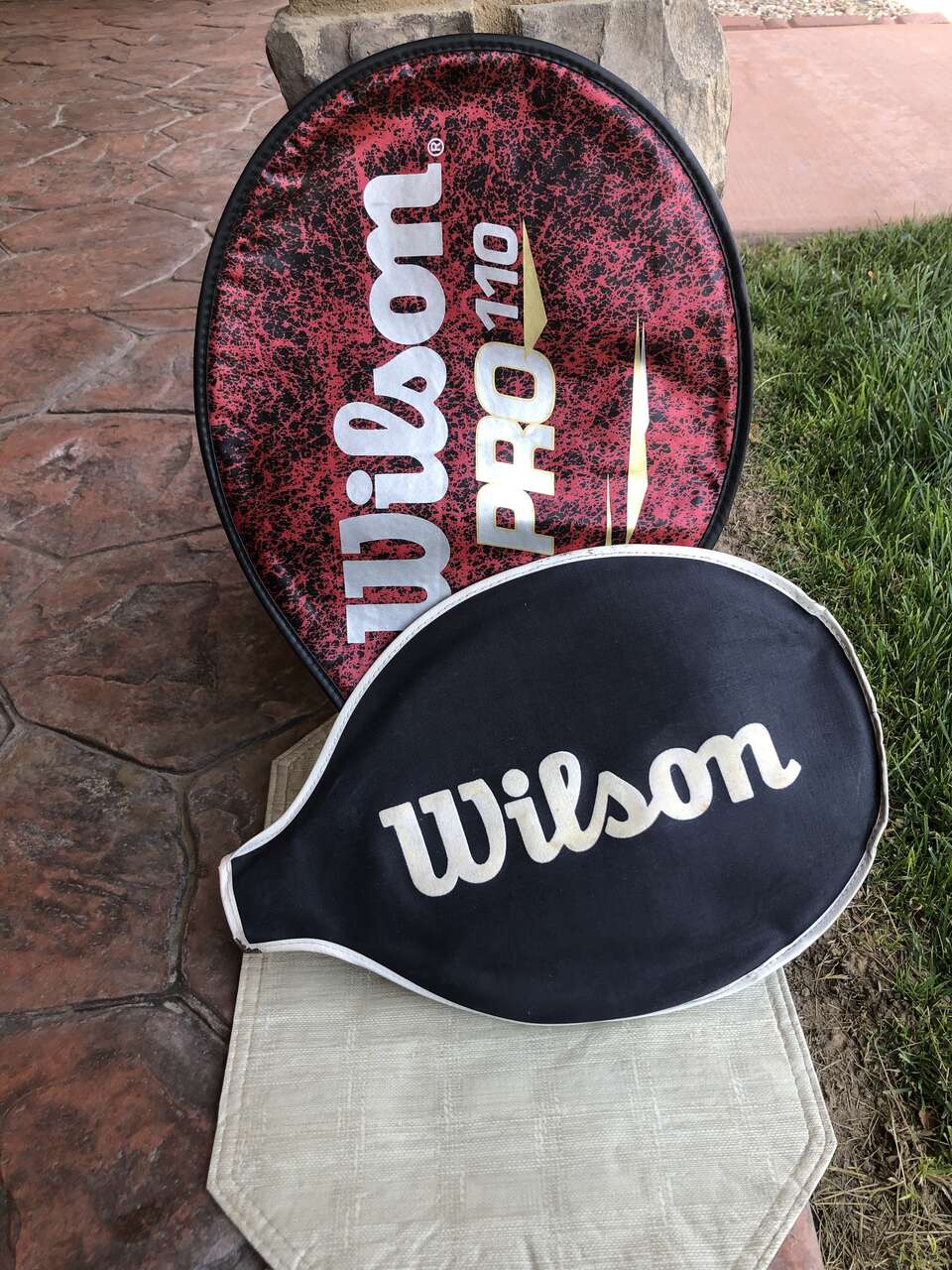 VenmoTwo Wilson Tennis Racquet head covers In amazing condition. $35 for both 1- Wilson Pro 110 Maroon Fits grip 4 1/2 Super Night Power Sysem. $20 2-Wilson Vintage Tennis Racquet Head Cover Black and White, Fits 4 1/2 Grip $15 Willing to sell individually