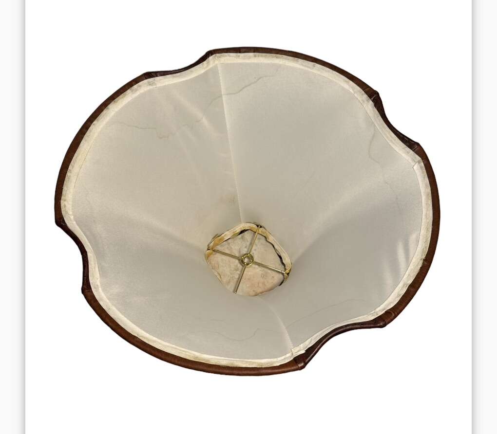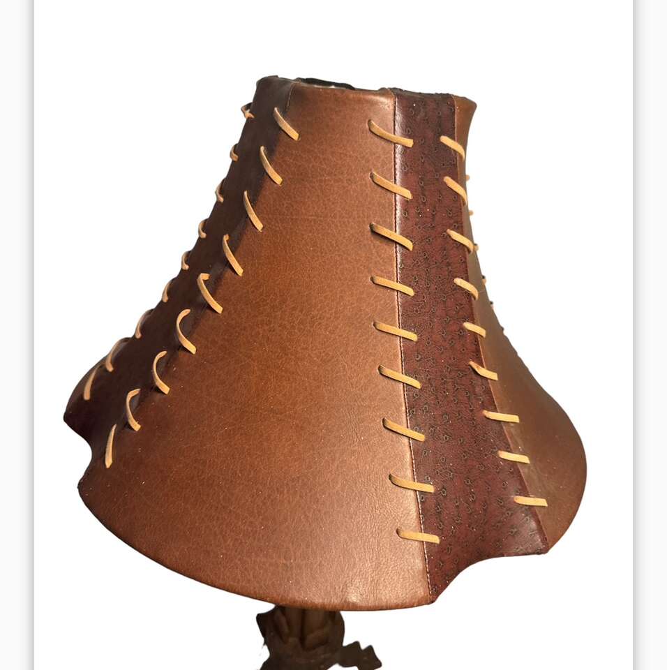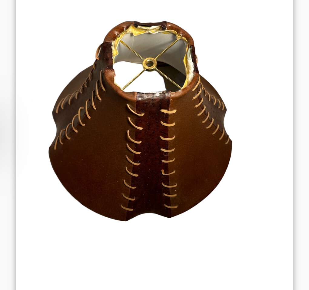 Faux leather 10” tall top 5” square. Bottom 17” wide