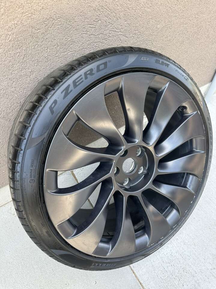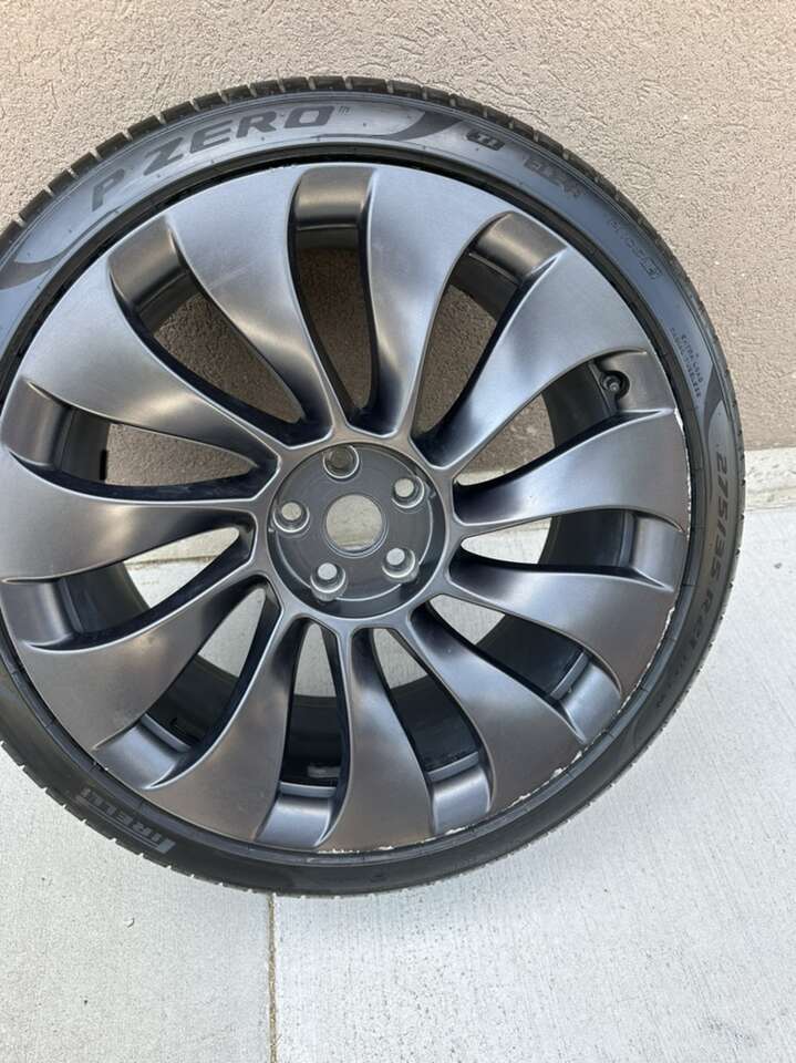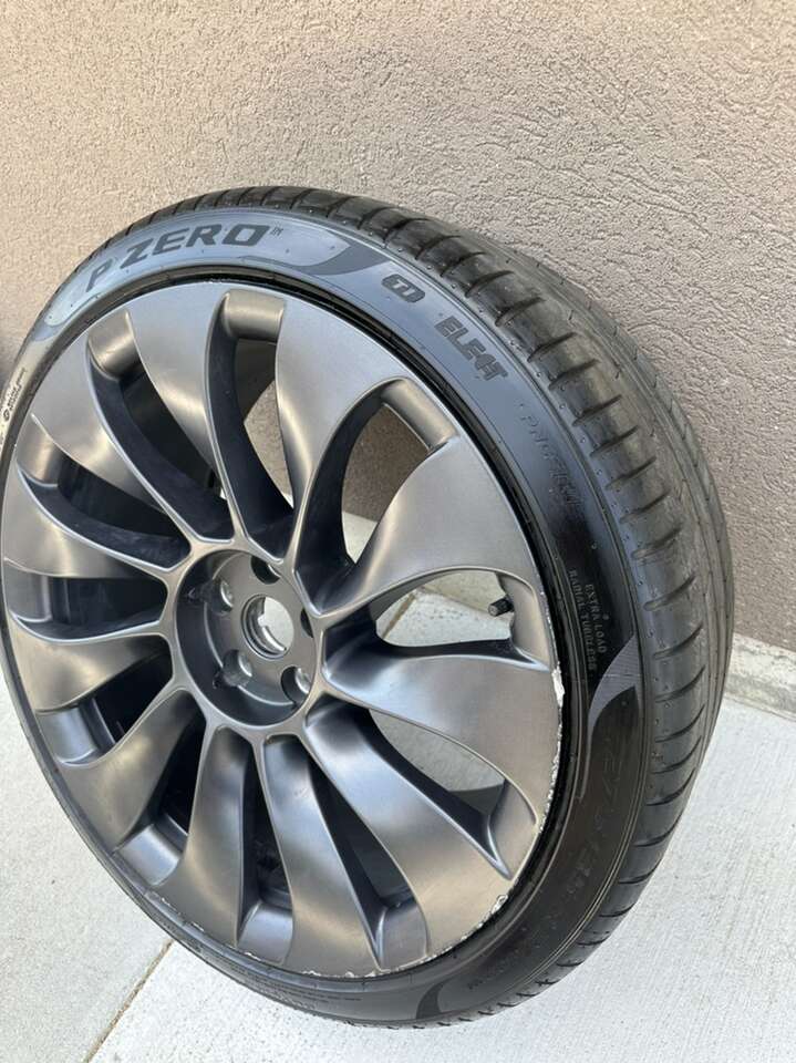 For sale is a rear wheel from a Tesla model Y performance. It will also fit on long range or standard range Model Y. This is the 21 x 10.5 inch uberturbine rim. The tire is the Pirelli 275/35R21 tire & has 7/32nds of tread left which is close to 70% tread remaining, and tire date code is from 2023. Rim does have some curb rash, but there's no bends or cracks it is straight and tire and wheel is balanced, and has facotry tpms sensor installed, no center cap included. This is ready to bolt on your car if you need replacement or just a spare tire for your car this is a great solution. Located in Layton Utah.